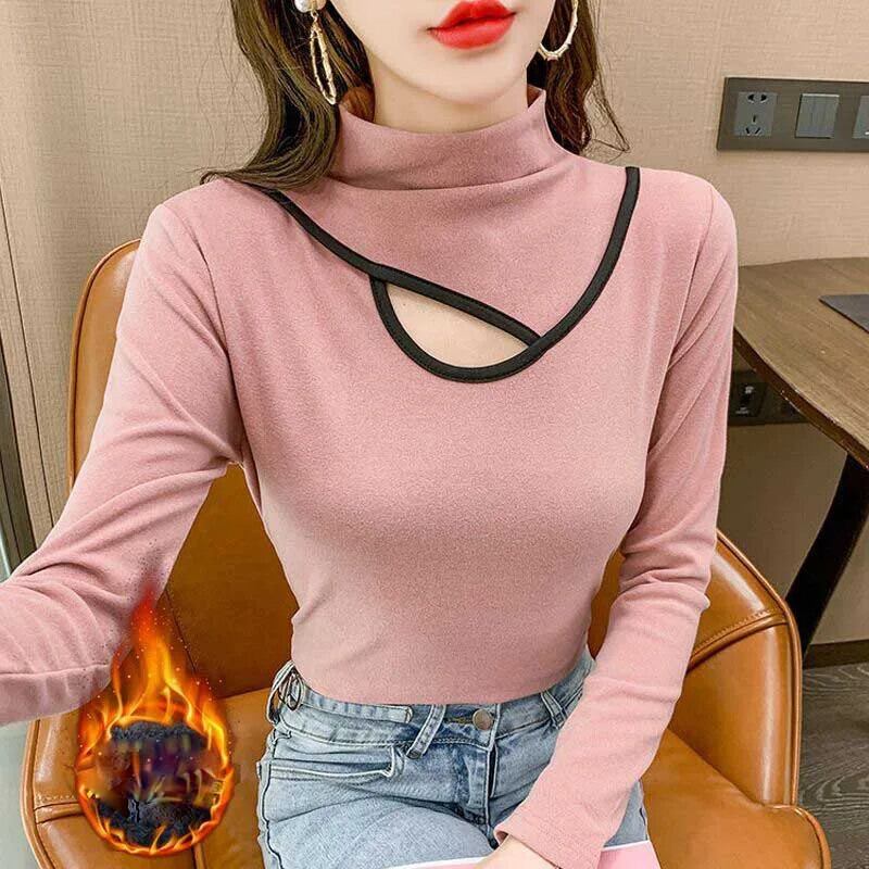送料無料 スタンドカラースプライシング中空アウトブラウス女性の 2023 冬スリムオールマッチトップスオフィスレディシャツ ウィンター 冬物 会社 学校 通勤や通学にも AE1288776698898368143