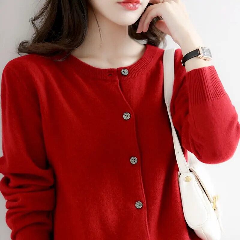 送料無料 O ネックニットボタンソリッドカラーオールマッチカーディガンセーター女性の 2022 秋ルーズトップス オータム 秋物 Oネック AE1288776661038629890