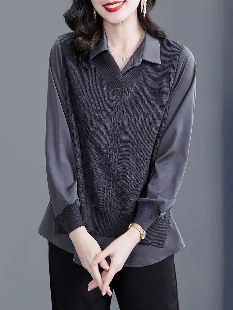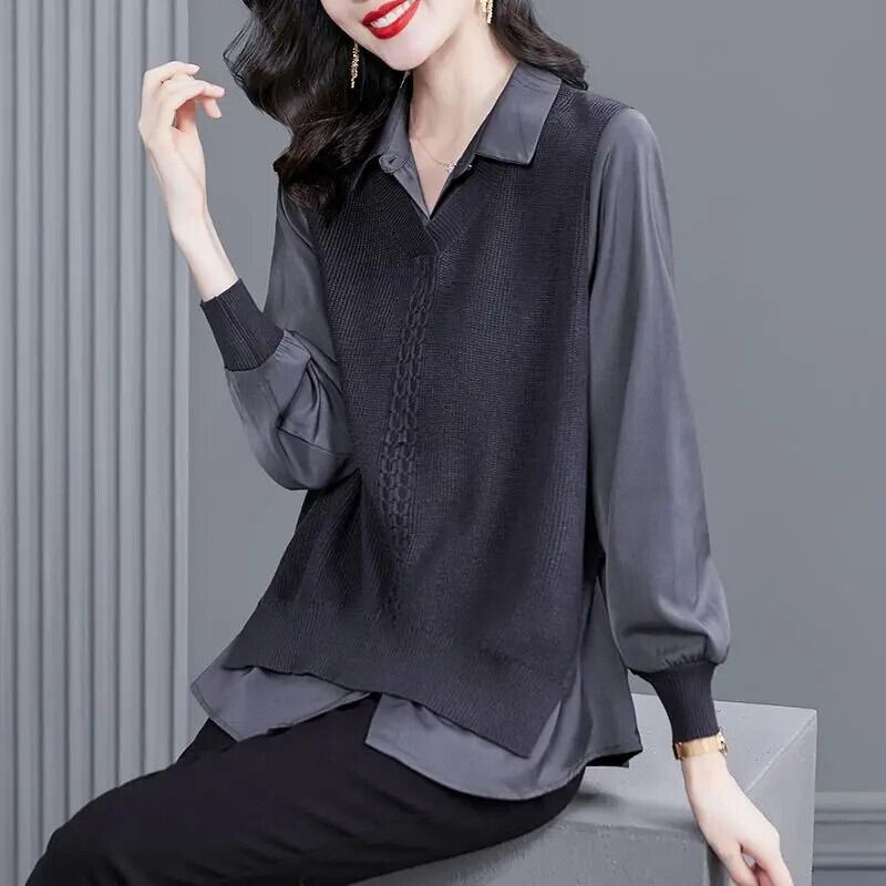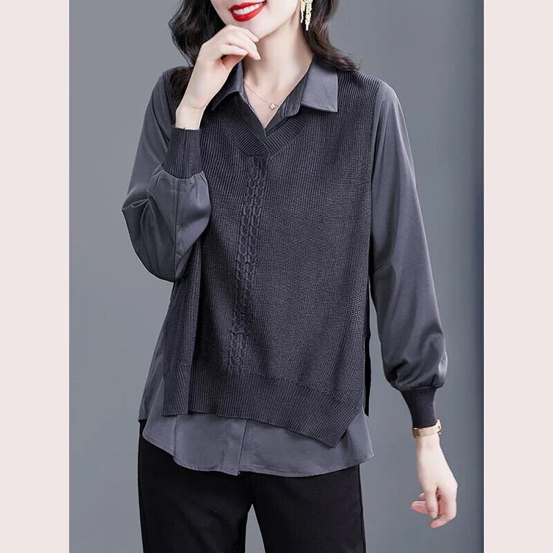 送料無料 スプライシング不規則なフェイクツーピースブラウス女性の 2023 秋冬特大トップス非対称シャツ オータム 秋物 ウィンター 冬物 AE128877666906401483