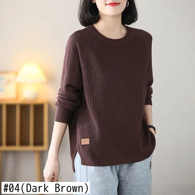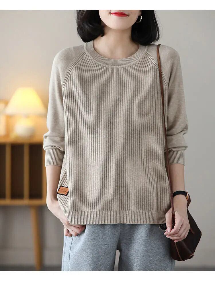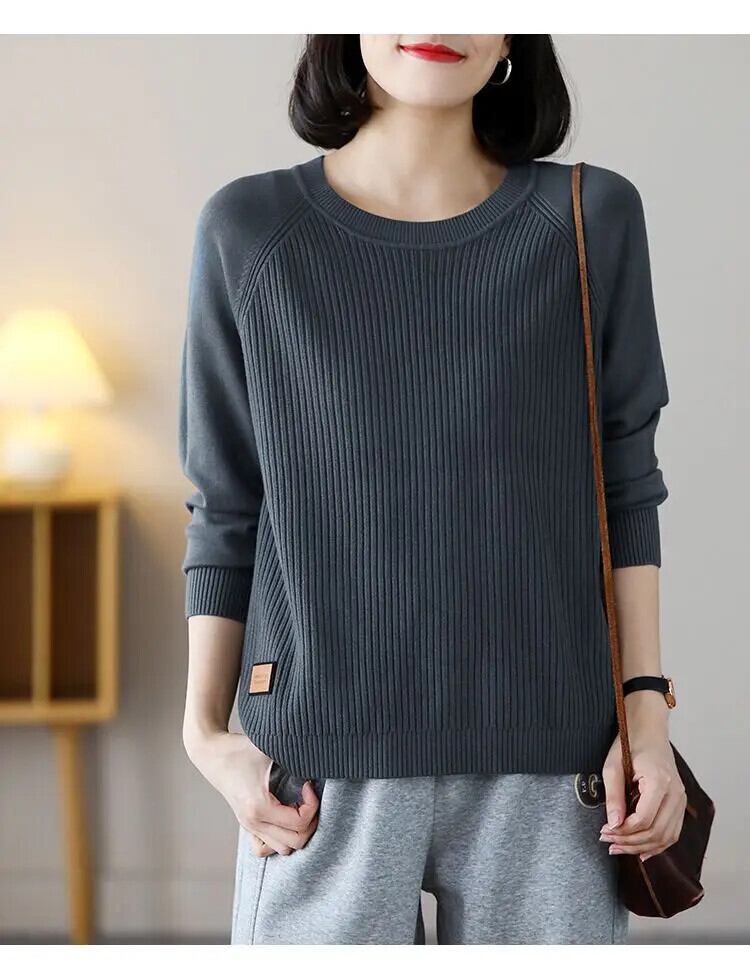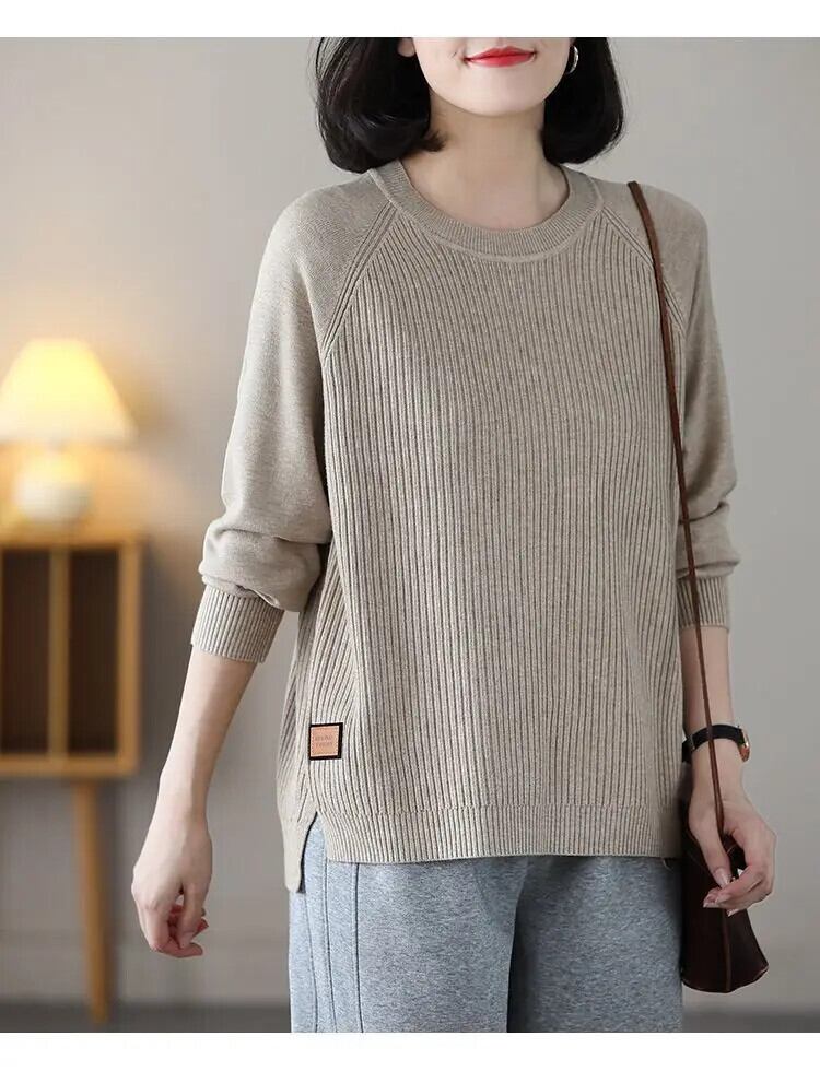 送料無料 O ネックソリッドカラーオールマッチセーター女性の 2022 秋特大プルオーバールーズトップス オータム 秋物 Oネック AE1288776679841216469