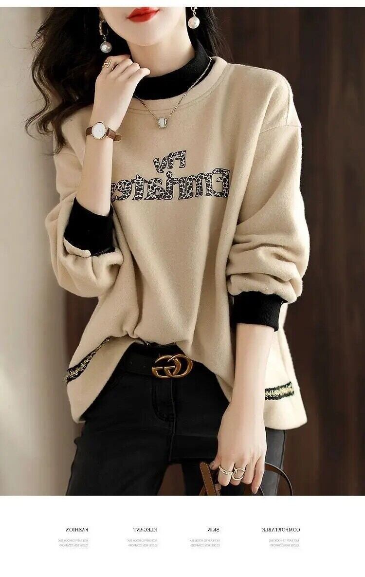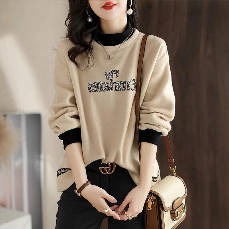 送料無料 スタンドカラースプライシングレターブラウス女性の 2023 秋冬特大オールマッチトップス通勤シャツ オータム 秋物 ウィンター 冬物 AE1288776682396019880