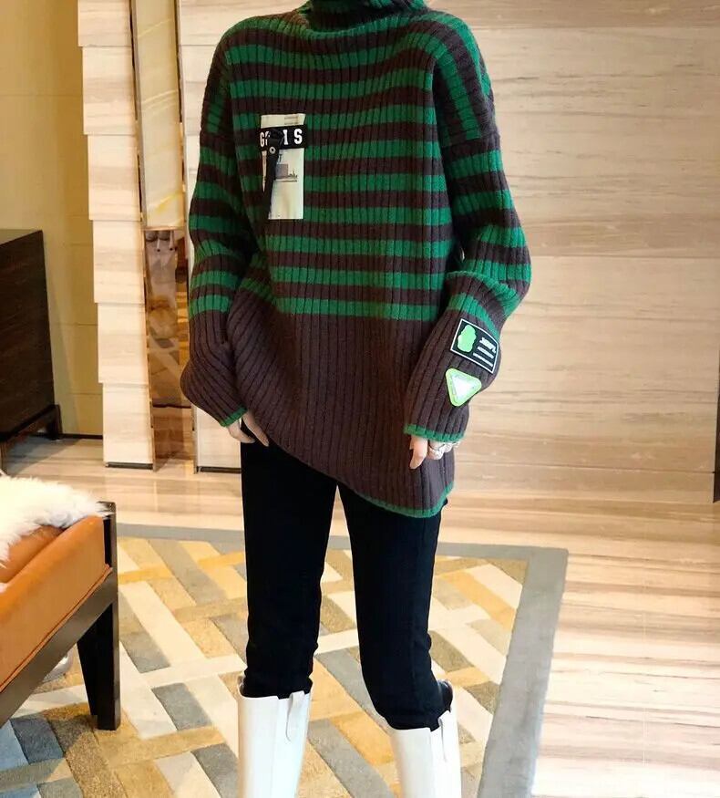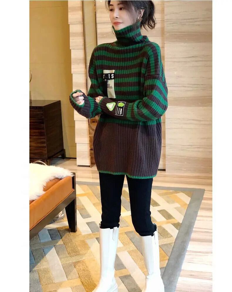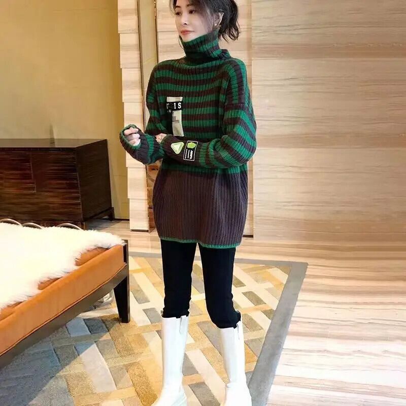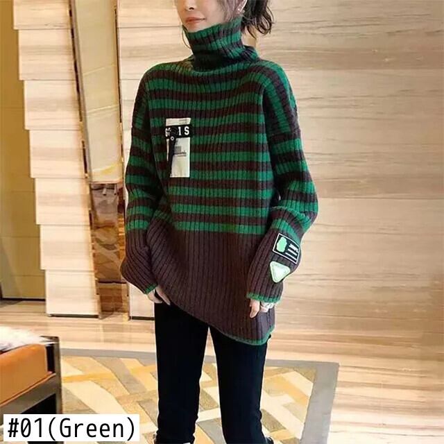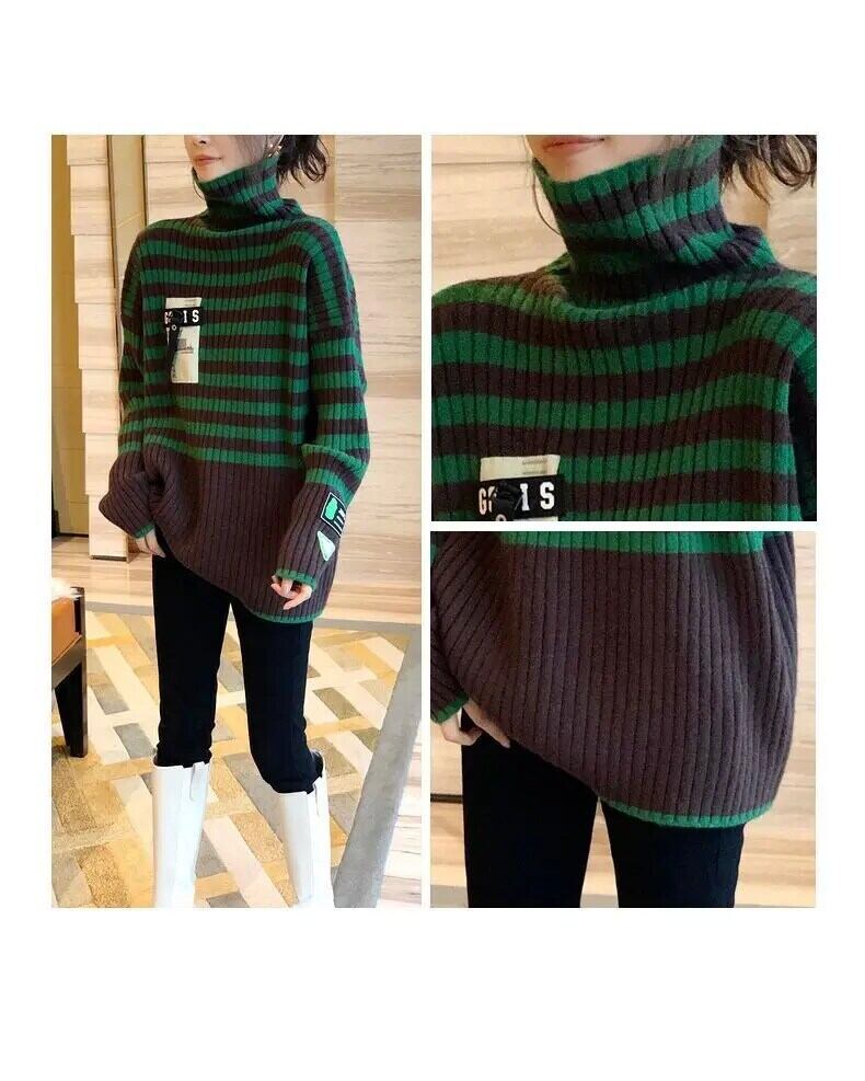送料無料 タートルネックスプライスストライプセーター女性の 2023 冬ルーズニット通勤プルオーバーオールマッチトップス ウィンター 冬物 AE1288776658710048489