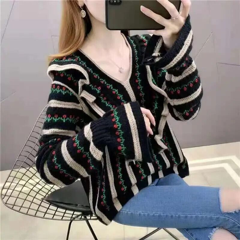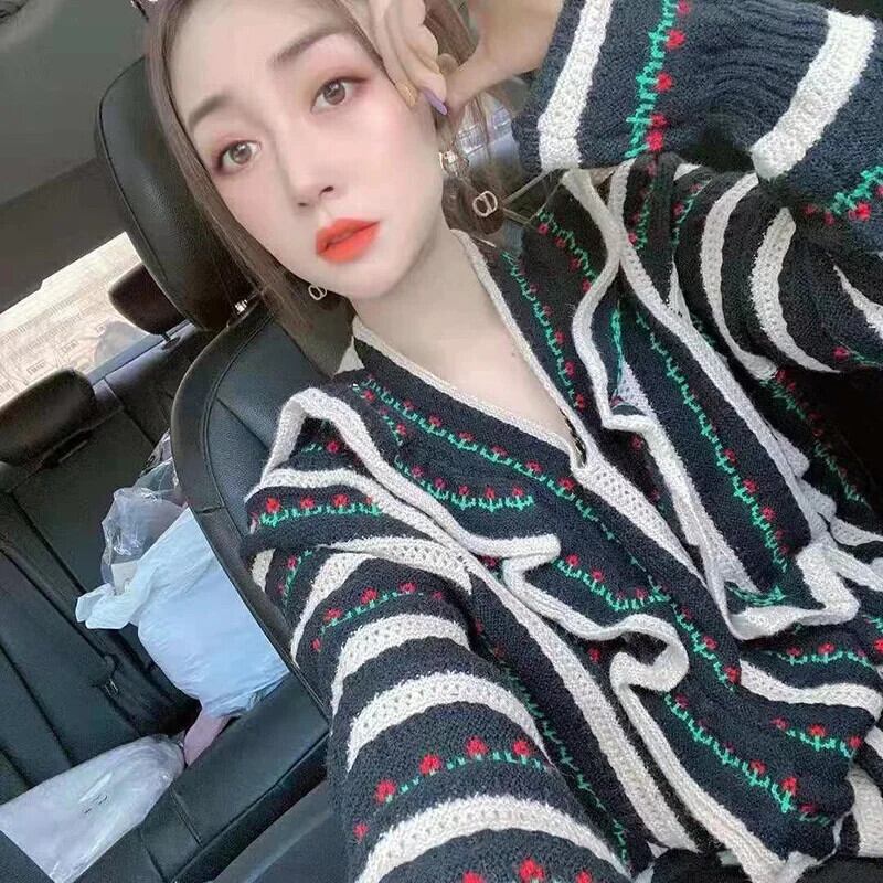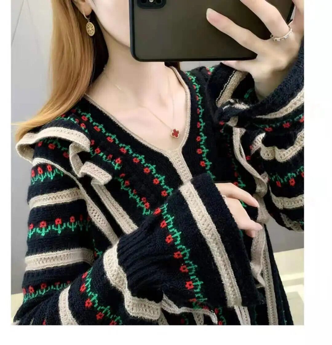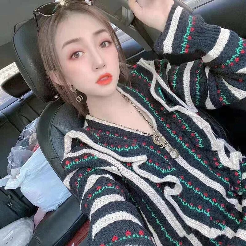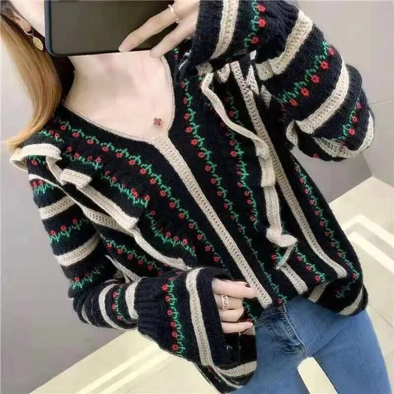 送料無料 フリル折り目バタフライスリーブセーター女性の 2023 秋冬ルーズプルオーバーニットトップス ラッフル オータム 秋物 ウィンター 冬物 AE1288776654293255033