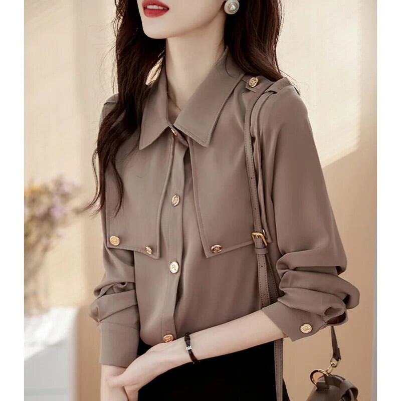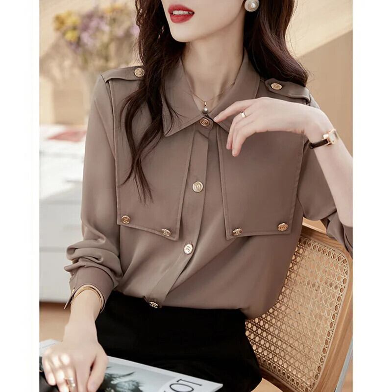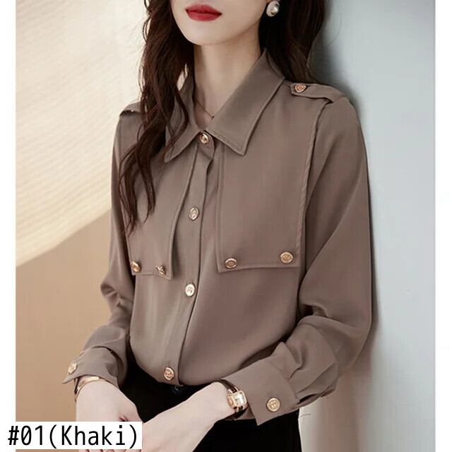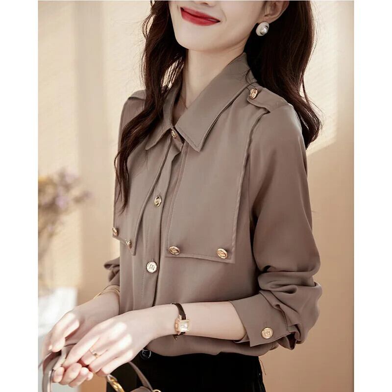 送料無料 ラペルボタン無地オールマッチシャツ 2023 秋トップスルーズオフィスレディブラウス オータム 秋物 ソリッドカラー 会社 学校 通勤や通学にも AE1288776629393768512