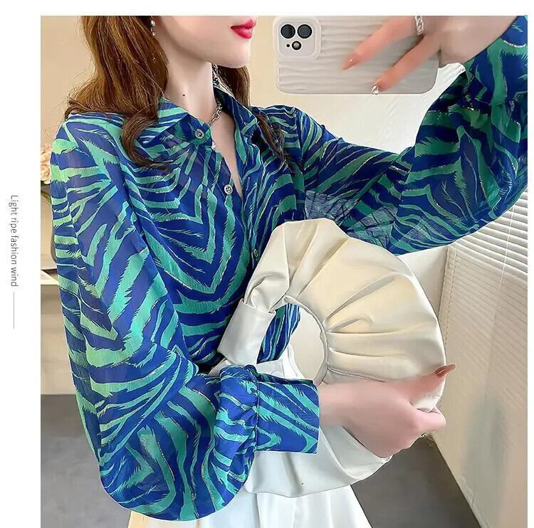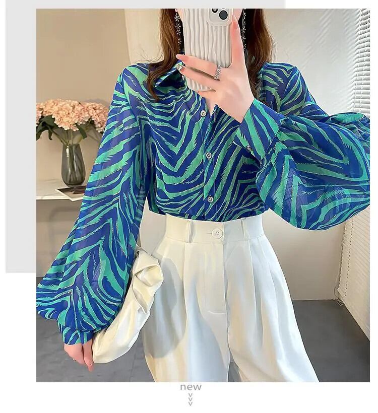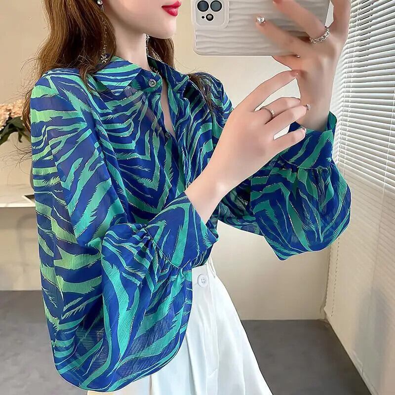 送料無料 ラペルヴィンテージプリントランタンスリーブシャツ女性の 2023 春夏トップスルーズオフィスレディブラウス スプリング 春物 サマー 夏物 ビンテージ 会社 学校 通勤や通学にも AE1288776630164347688