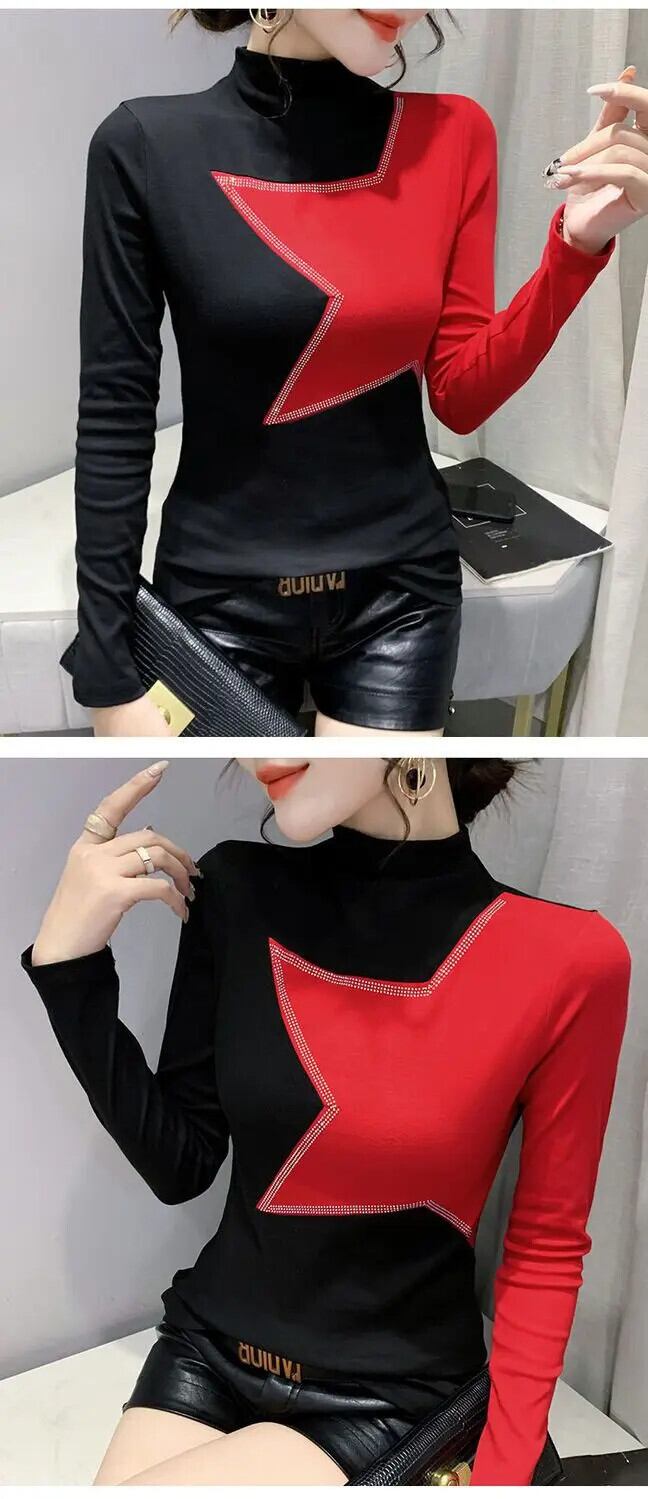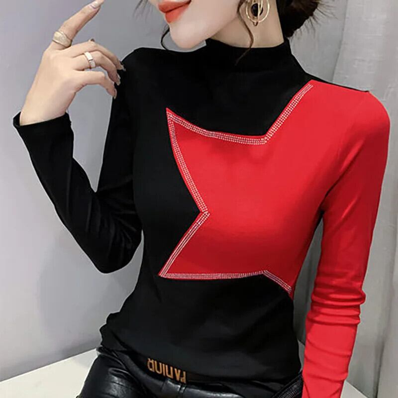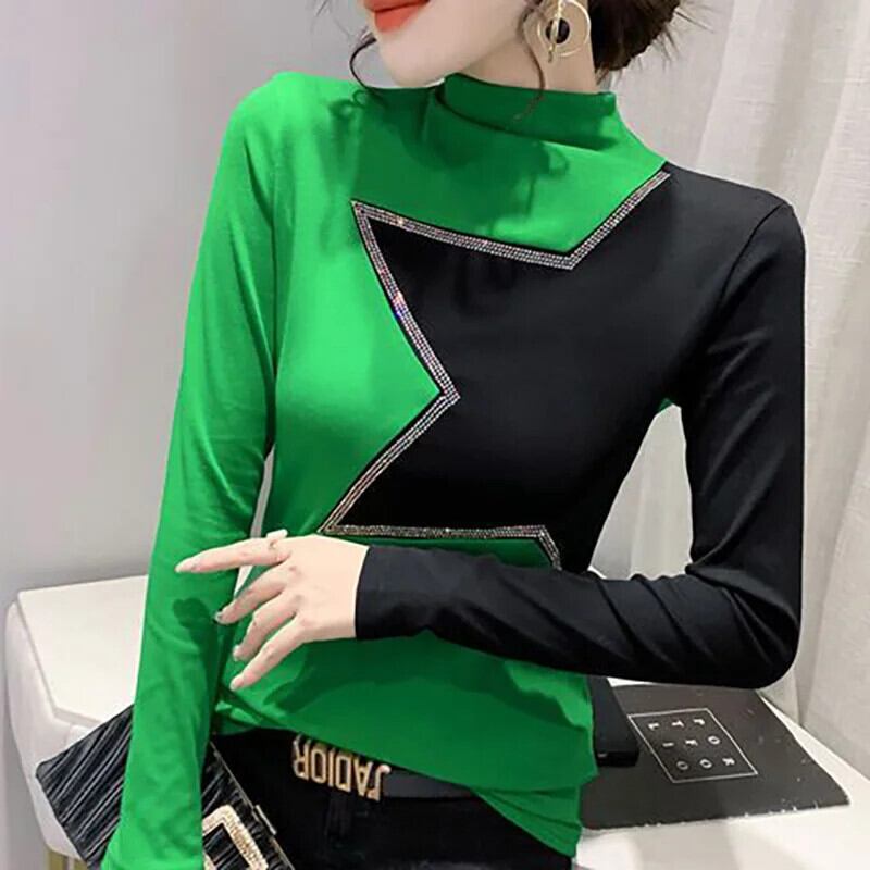 送料無料 ハーフカラー スプライシング オールマッチ ダイヤモンド ブラウス レディース 2022 秋 プルオーバー ルーズ シック シャツ オータム 秋物 AE1288776648829533764
