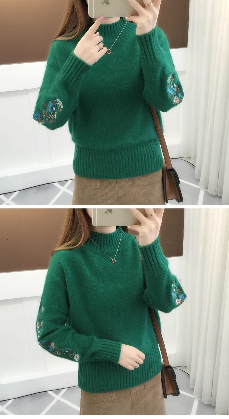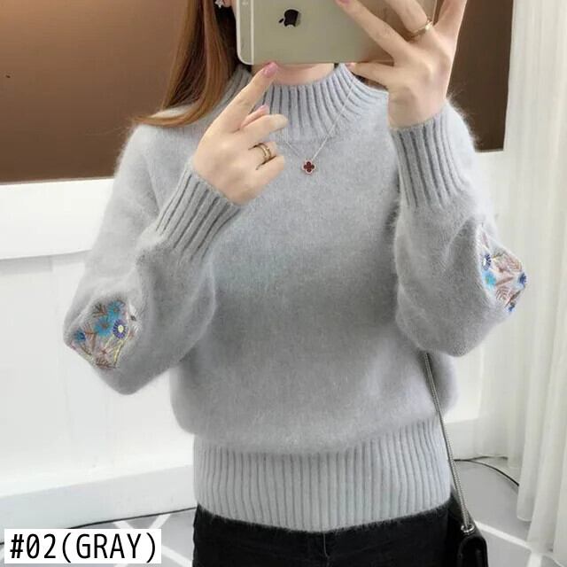 送料無料 スタンドカラーソリッドカラー刺繍セーター女性の 2022 秋ルーズプルオーバーオールマッチトップス オータム 秋物 AE1288776673257919892