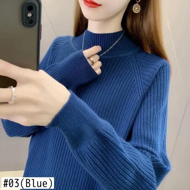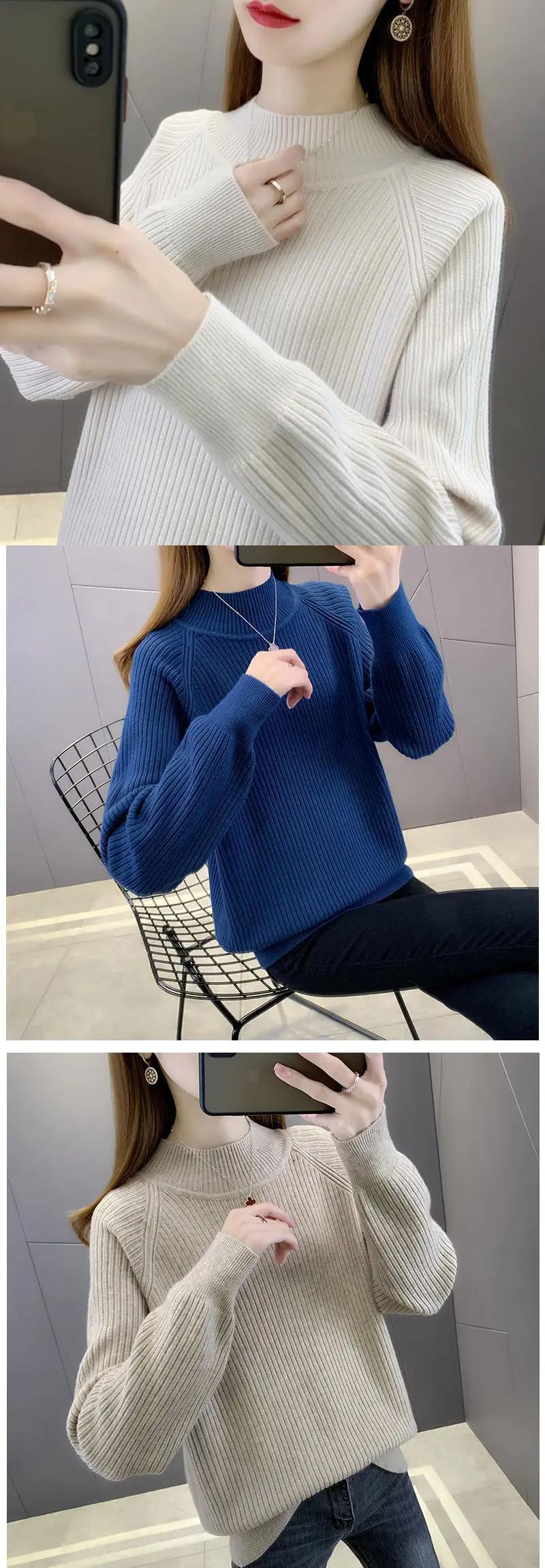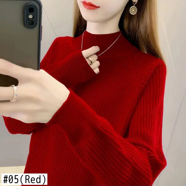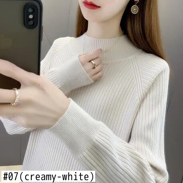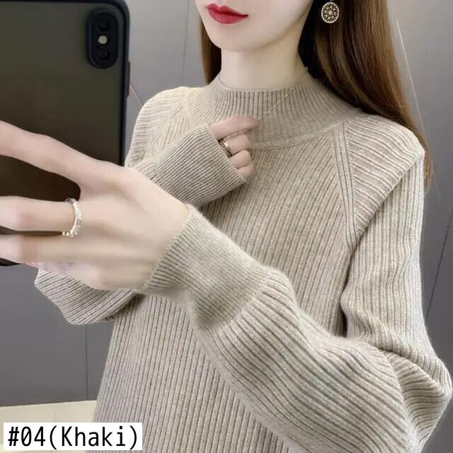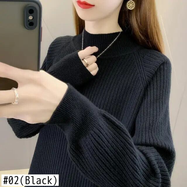 送料無料 ソリッドカラーのハーフカラーニットオールマッチセーターレディース2022秋ルーズプルオーバー オータム 秋物 AE1288776662149775734