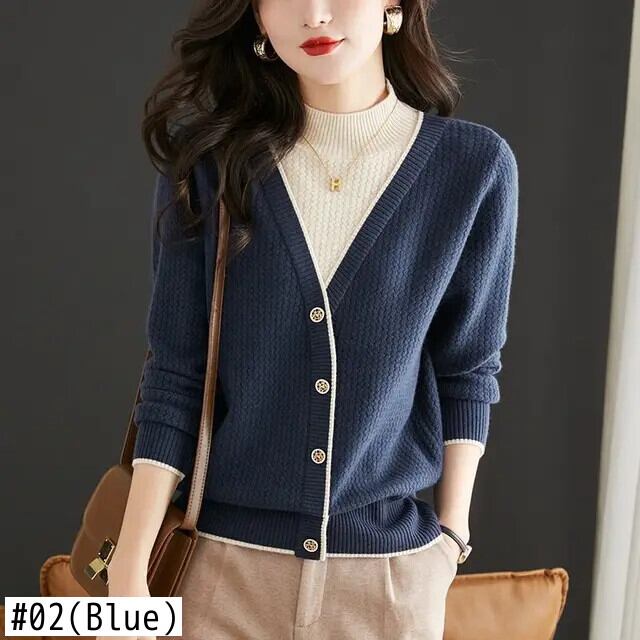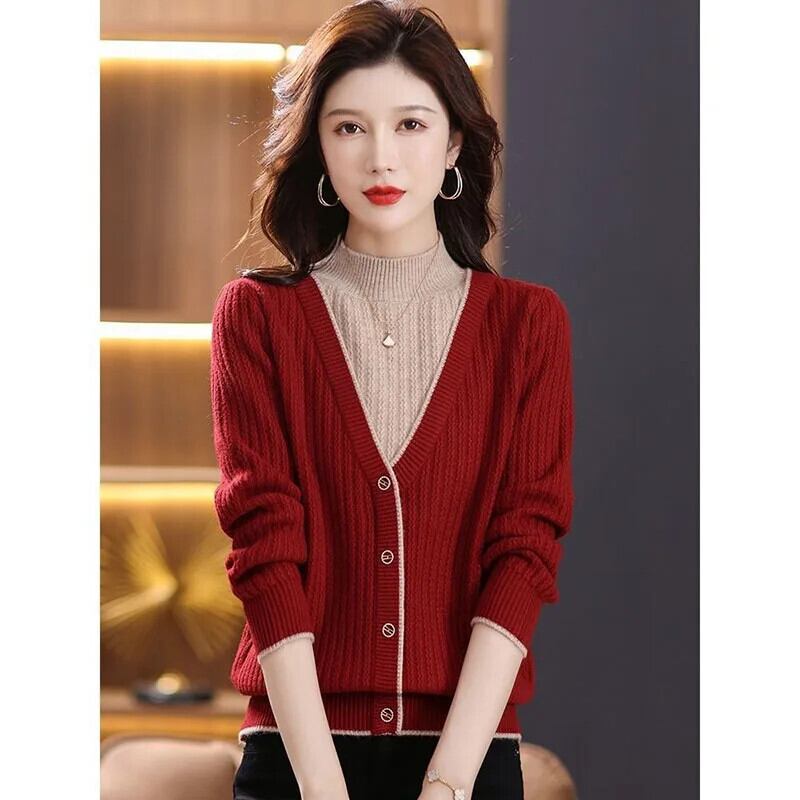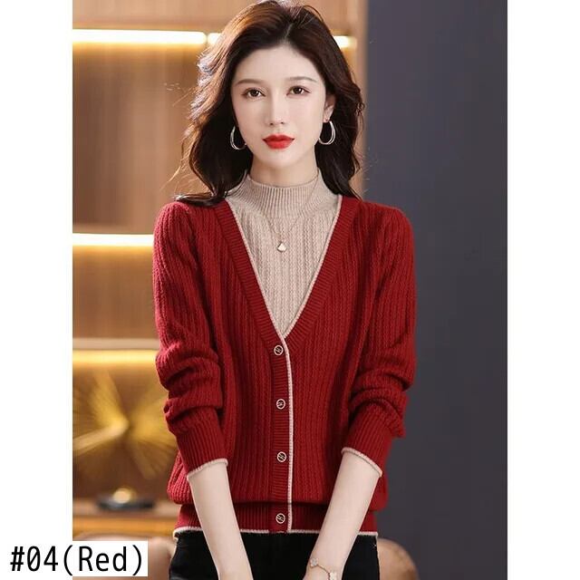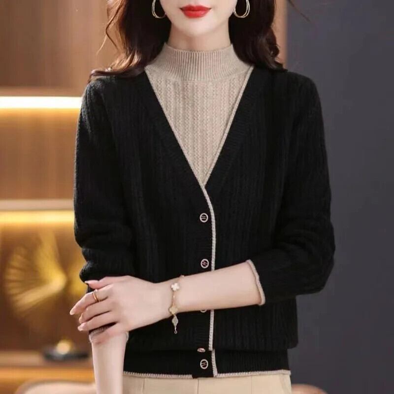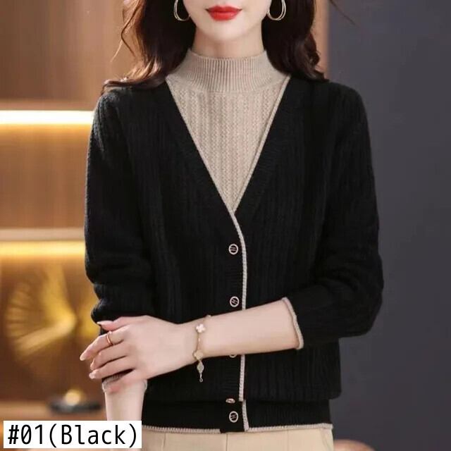 送料無料 スプライスボタンオールマッチフェイクツーピースセーター女性の 2023 秋冬プルオーバー通勤トップス オータム 秋物 ウィンター 冬物 AE1288776612578518497