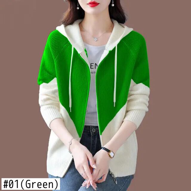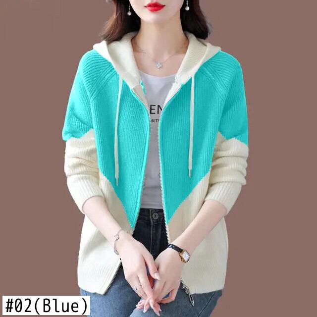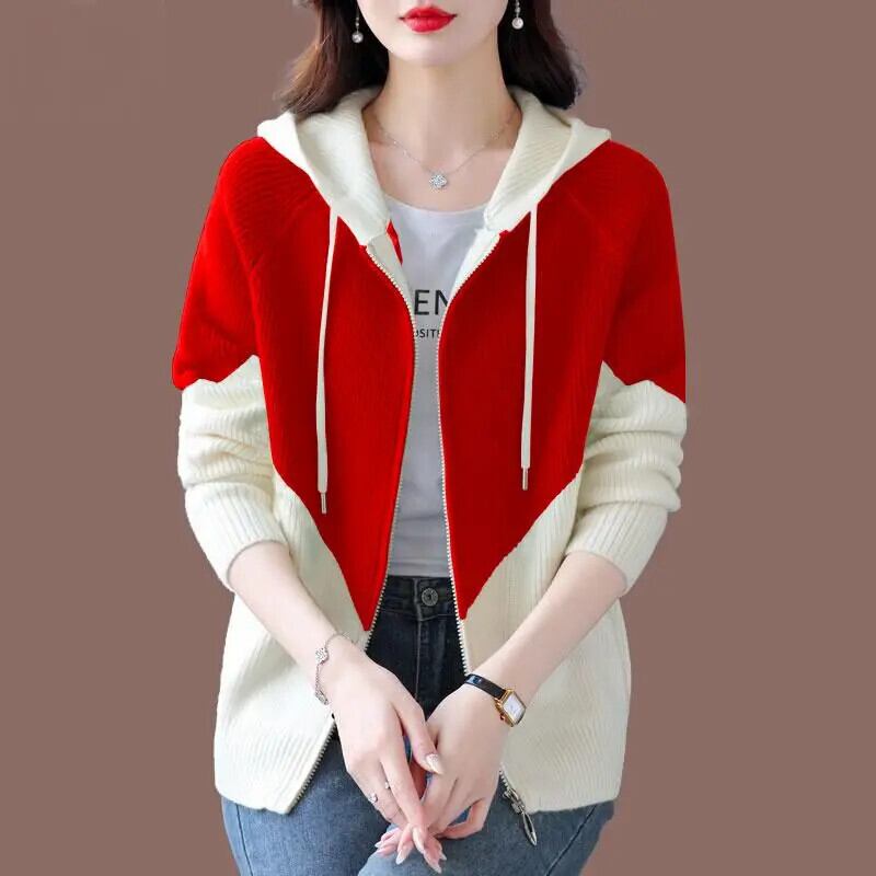 送料無料 ジッパースプライシングオールマッチレースアップフード付きカーディガンセーター女性の 2023 冬ルーズニット通勤トップス ウィンター 冬物 AE1288776668369511842