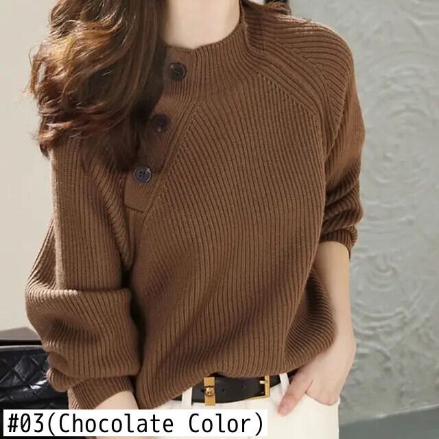 送料無料 ハーフカラーボタン非対称セーター女性の 2022 秋プルオーバーオールマッチ通勤トップス オータム 秋物 AE1288776622853359339