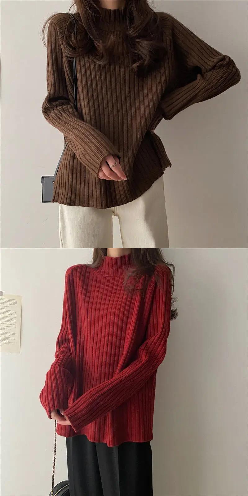 送料無料 タートルネックニットソリッドカラーオールマッチセーター女性の 2022 秋プルオーバールーズトップス オータム 秋物 AE1288776643140564154