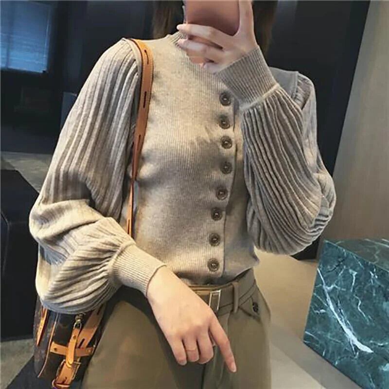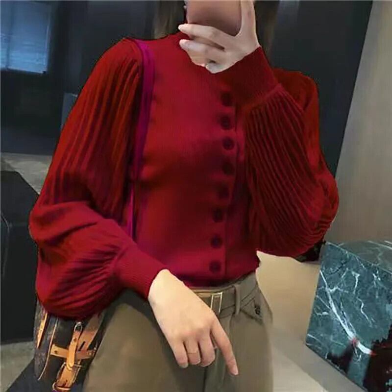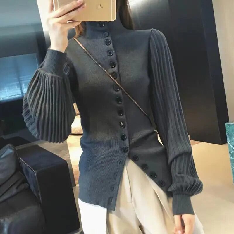 送料無料 タートルネック スプライシングひだランタン スリーブ シャツ レディース 2023 秋冬 トップス ルーズ ブラウス ランタンスリーブ オータム 秋物 ウィンター 冬物 AE1288776654736417722