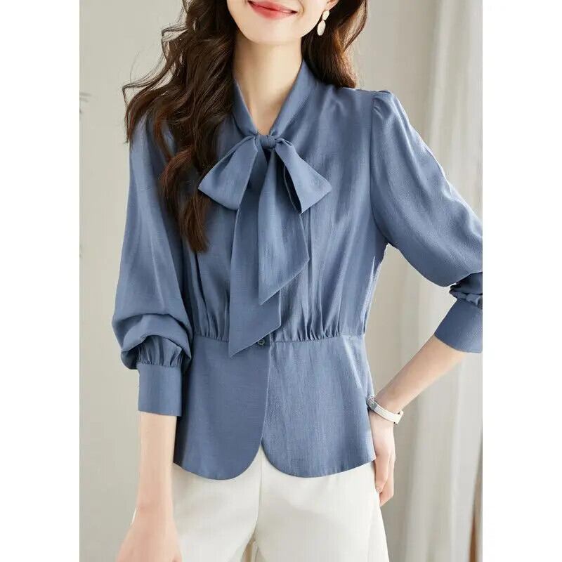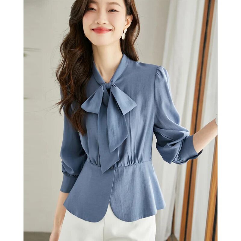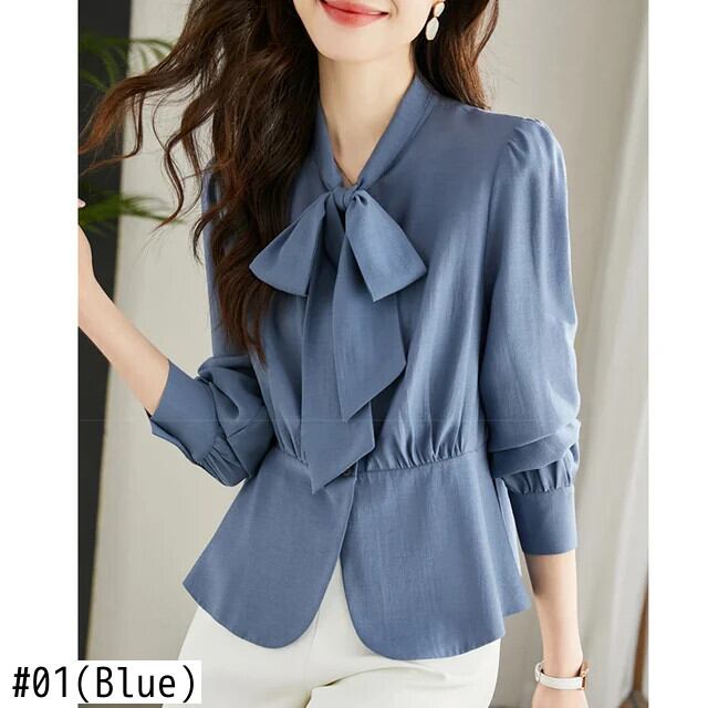 送料無料 ソリッドカラー スプライス レースアップ ボウ シャツ レディース 2023 秋 トップス 通勤 ブラウス リボン オータム 秋物 AE1288776699479076370