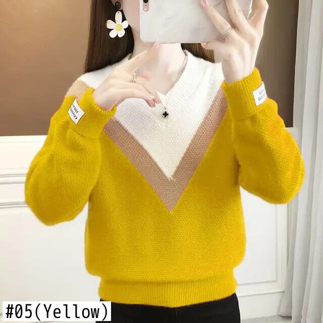 送料無料 V ネックスプライシンググラデーションねじ糸セーター 2023 秋冬プルオーバー通勤トップス オータム 秋物 ウィンター 冬物 Vネック AE1288776635841609730