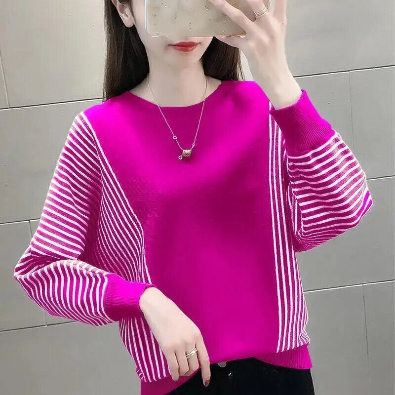 送料無料 バットウィングスリーブニットスプライスストライプセーター女性の 2022 秋特大プルオーバートップス オータム 秋物 AE1288776646078679223