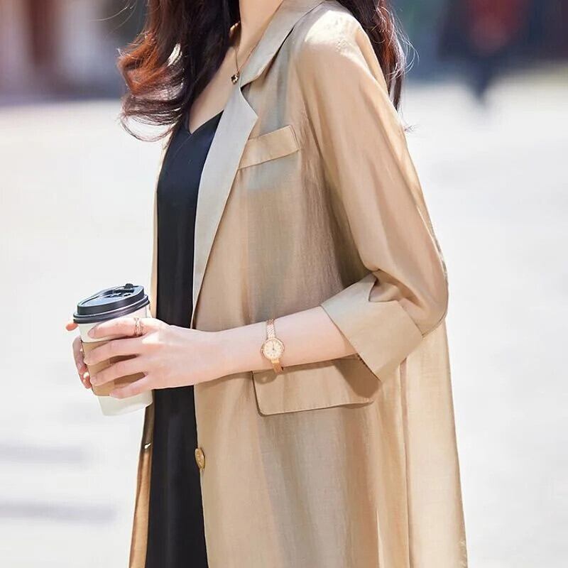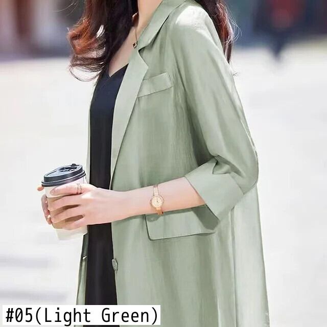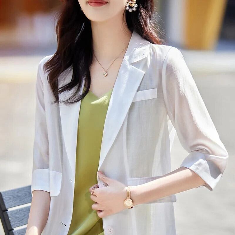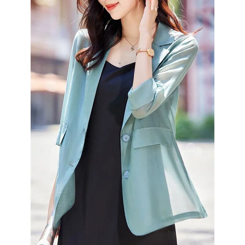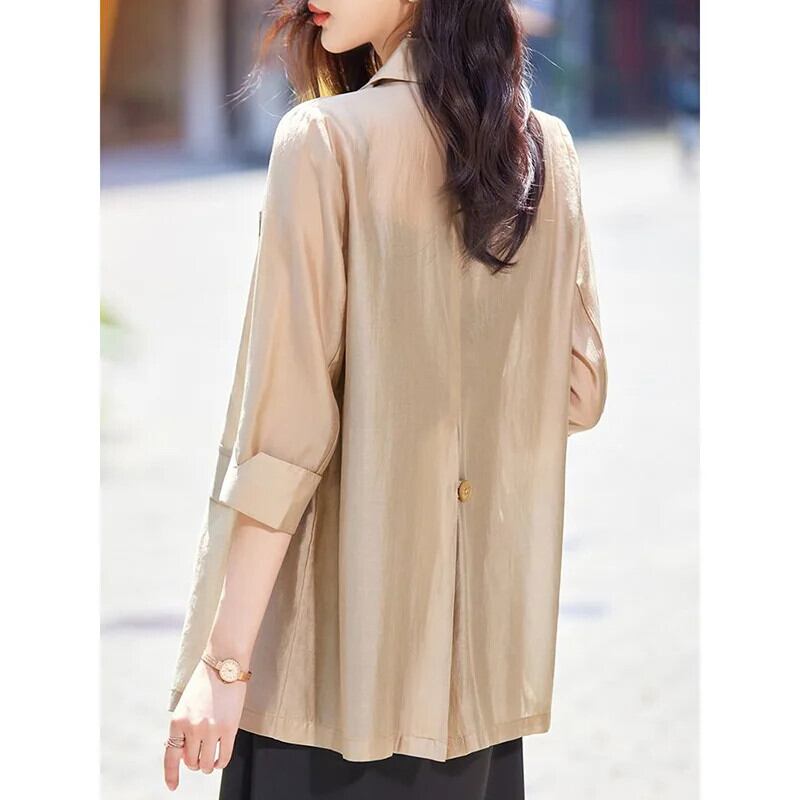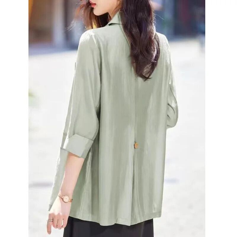 送料無料 ソリッドカラーのボタンスプライシングルーズブレザー女性 2023 夏トップスオールマッチオフィスレディブレザー サマー 夏物 会社 学校 通勤や通学にも AE1288776611669622636