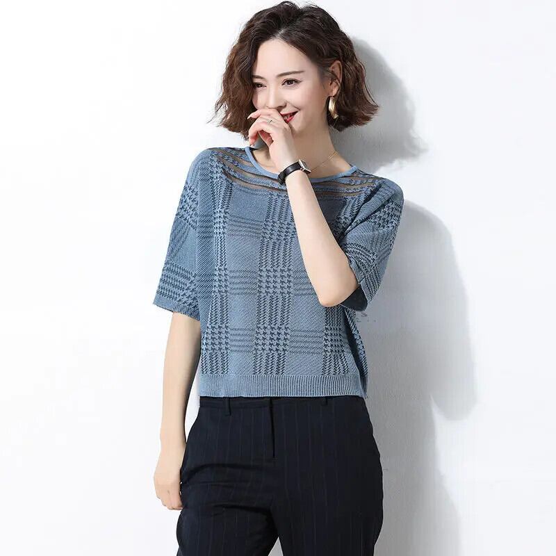 送料無料 O ネックスプライシングガーゼルーズ中空アウトブラウス女性の 2023 夏プルオーバーオフィスレディシャツ サマー 夏物 Oネック 会社 学校 通勤や通学にも AE1288776612095965647