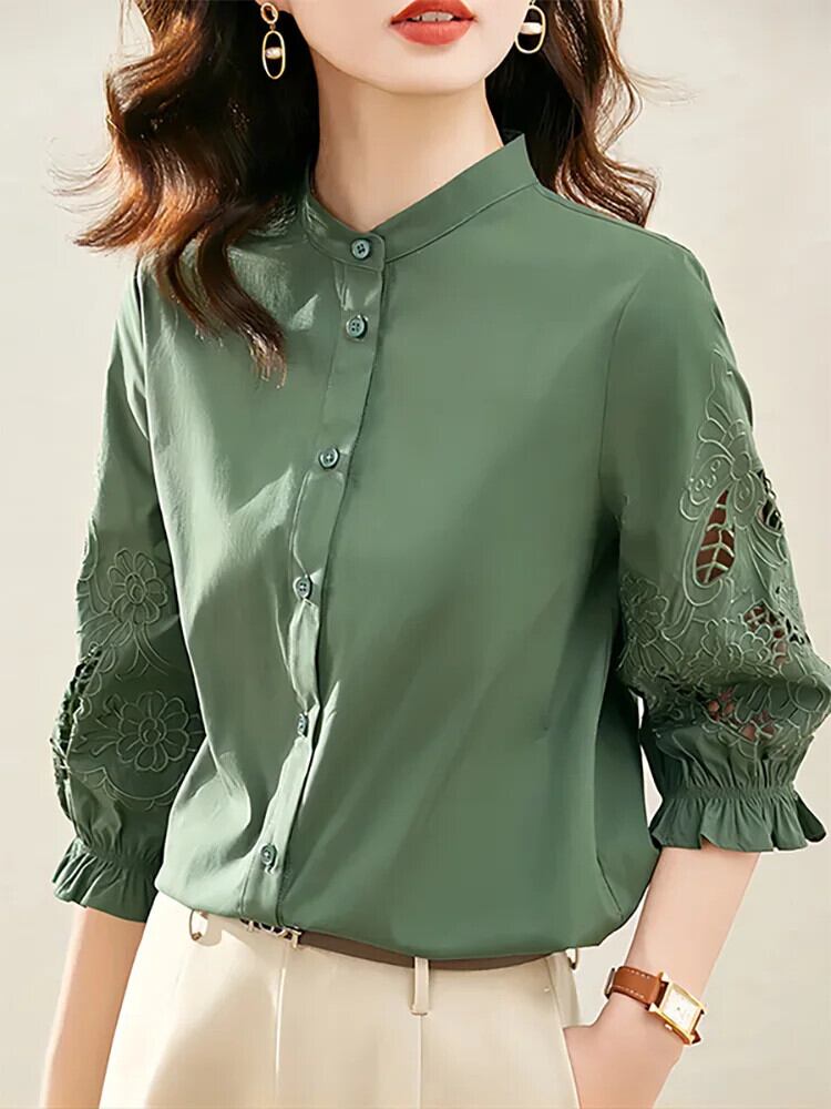 送料無料 ボタン 3 四半期刺繍中空アウトシャツ女性の 2023 秋冬トップスオフィスレディブラウス オータム 秋物 ウィンター 冬物 会社 学校 通勤や通学にも AE1288776675487248149