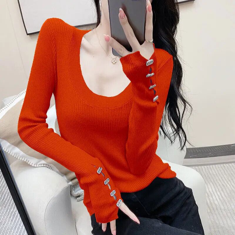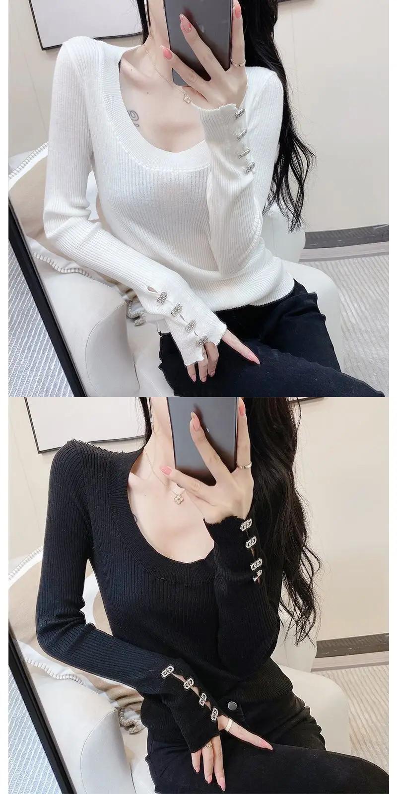 送料無料 O ネックニットスプライスボタンブラウス女性の 2023 秋冬ソリッドカラートップス甘いシャツ 大人ガーリー スウィート キュート カジュアル オータム 秋物 ウィンター 冬物 Oネック AE1288776670628836661