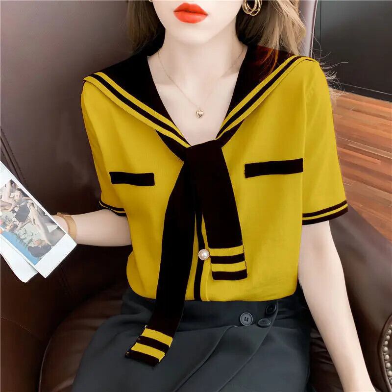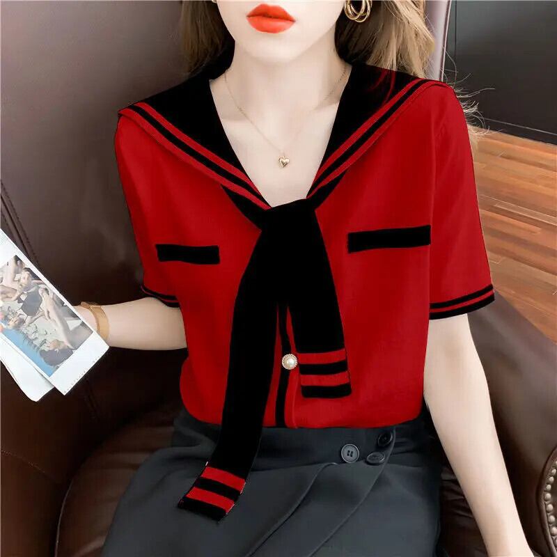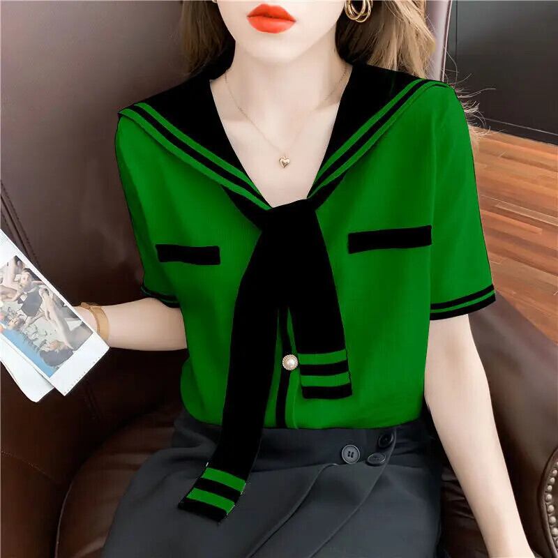 送料無料 V ネックスプライスネクタイボタンルーズブラウス特大レースアップ通勤プルオーバー 2022 夏シャツ サマー 夏物 Vネック AE1288776691260901483