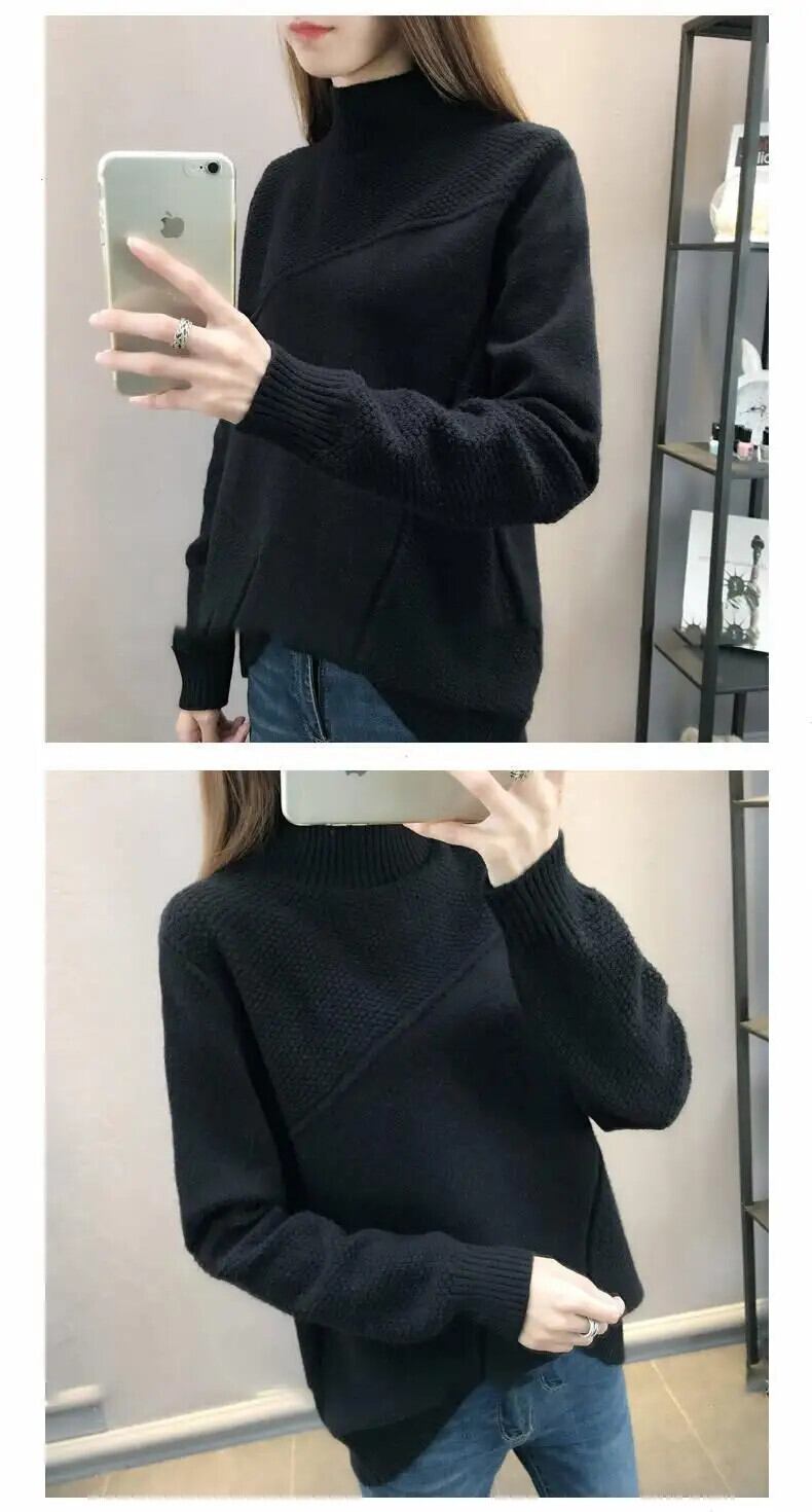 送料無料 タートルネックニットソリッドカラーオールマッチセーター女性の 2022 秋プルオーバールーズトップス オータム 秋物 AE1288776636945763502