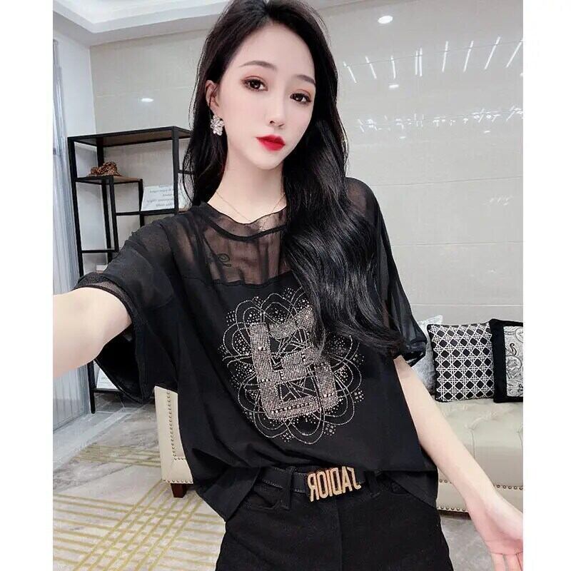 送料無料 スプライス ガーゼ ダイヤモンド バットウィング スリーブ シフォン ブラウス レディース 2023 夏 オーバーサイズ トップス シャツ サマー 夏物 AE128877665111823353