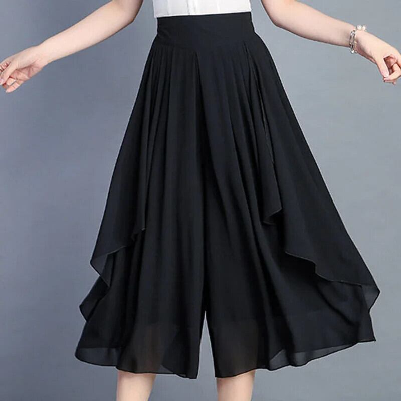 送料無料 弾性ウエストひだフリルパンツレディース 2023 オフィスレディ通勤ソリッドカラー不規則なカプリパンツ ラッフル エラスティック 伸縮 会社 学校 通勤や通学にも AE1288776645748985871