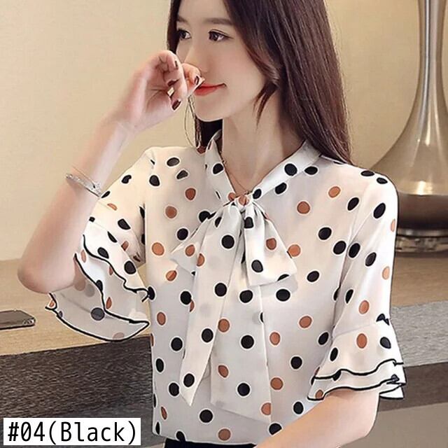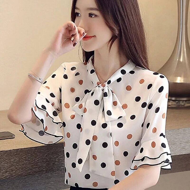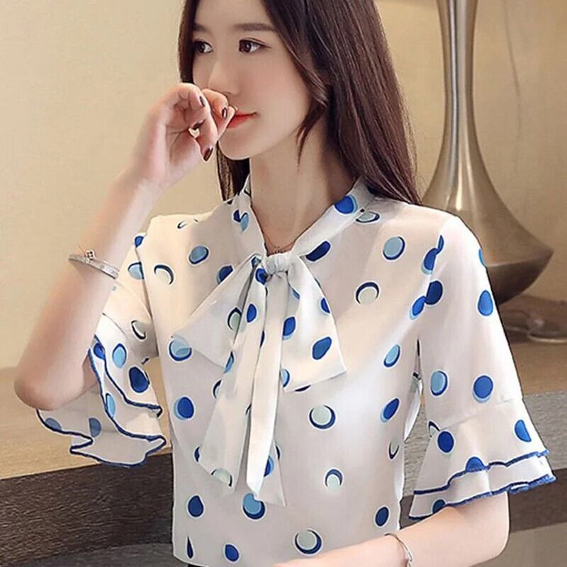 送料無料 リボンプリント水玉バタフライスリーブルーズシフォンシャツ夏の通勤トップス特大の甘いブラウス 大人ガーリー スウィート キュート カジュアル サマー 夏物 AE1288776649050914512