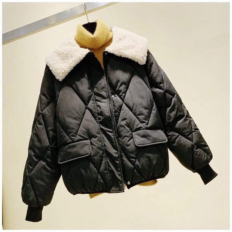 送料無料 Gidyq 女性ラムベルベットパーカーストリートパフティージャケットパッチワークルーズダウンコート冬 ウィンター 冬物 AE008077646475962565