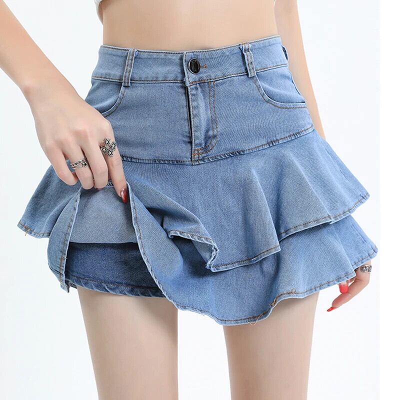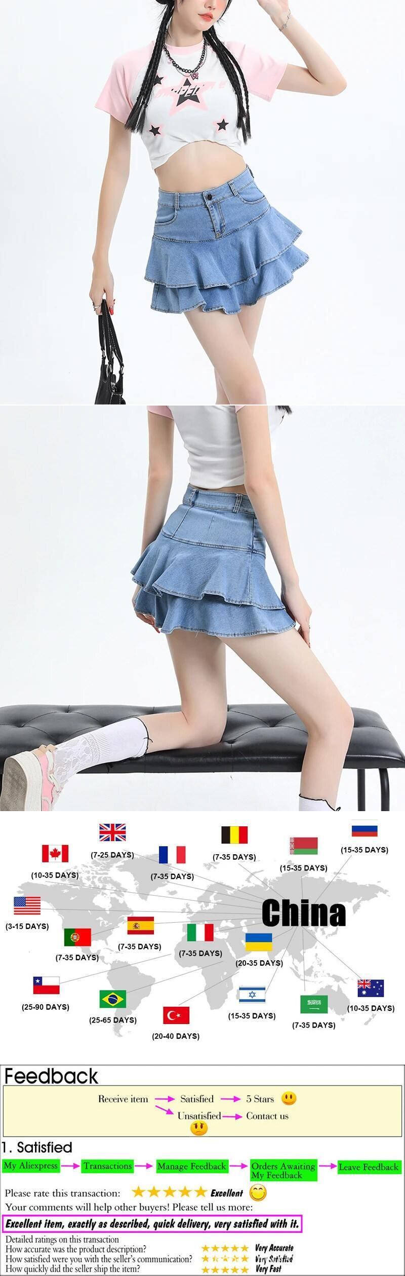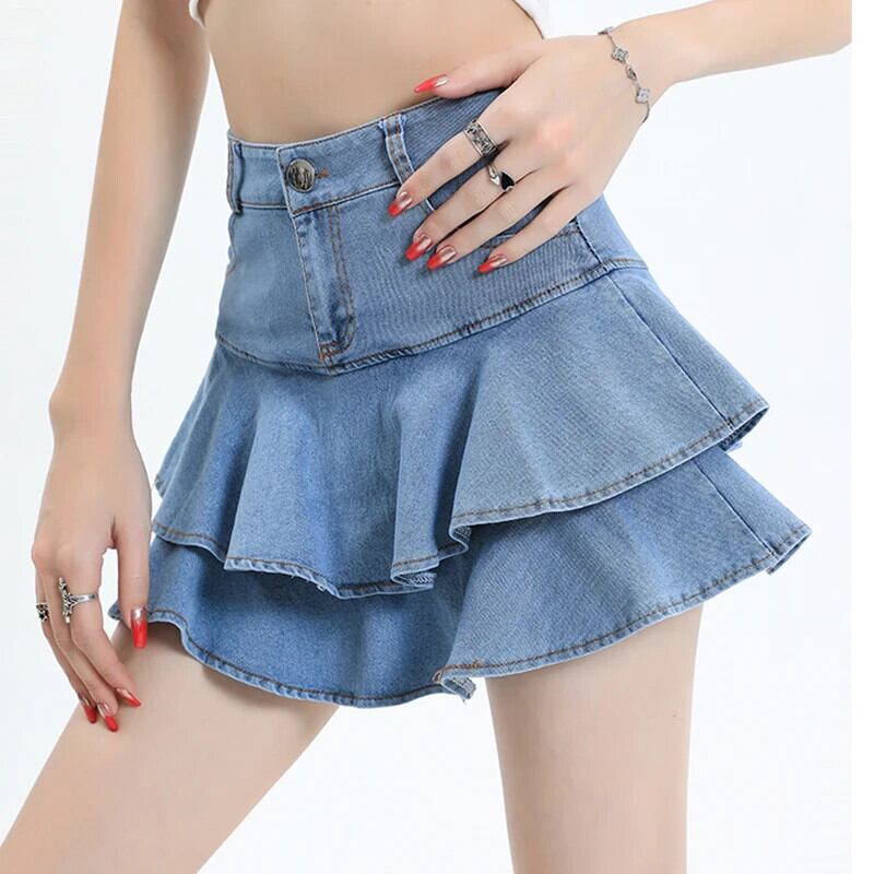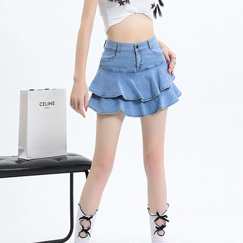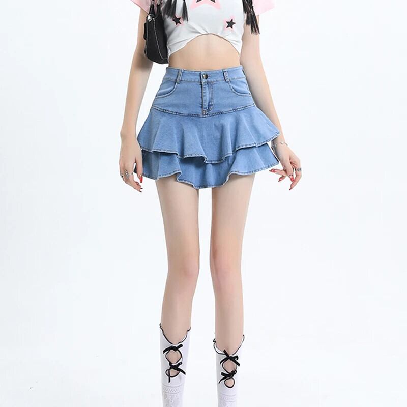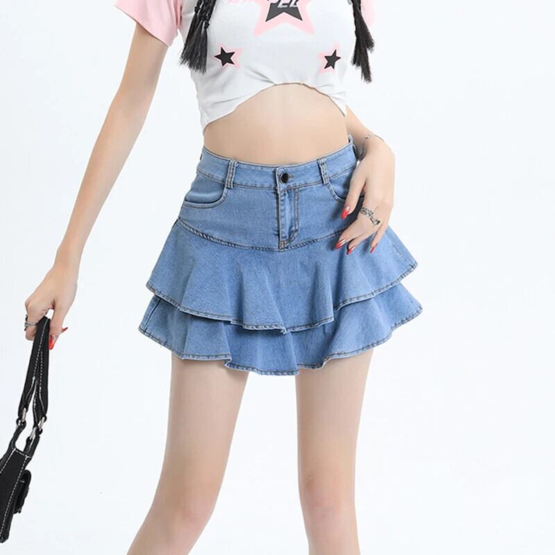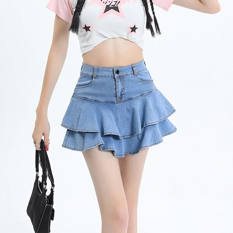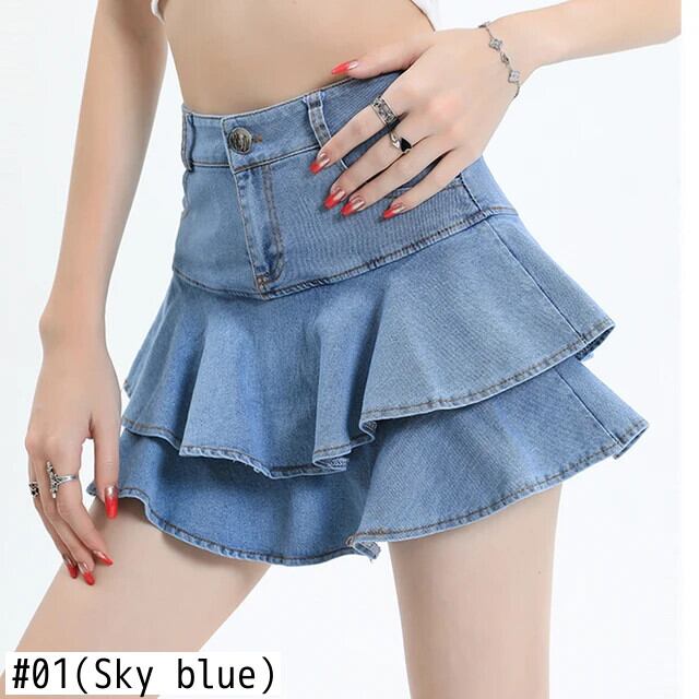 送料無料 Gidyq 女性フリルデニムスカート夏のウエストミニスカート Y2K 因果すべて一致ブルージーンズスカート ラッフル サマー 夏物 AE008077675281951335