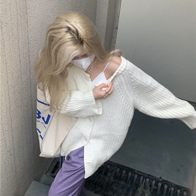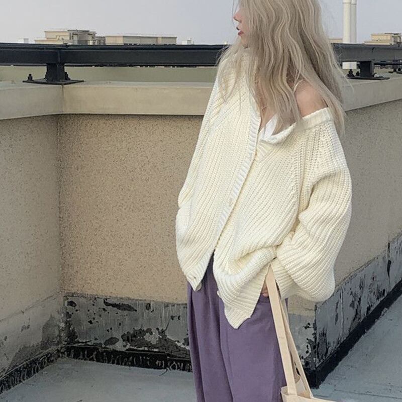 送料無料 Gidyq 女性カーディガンセーターストリートボタンルーズニットコートすべて一致ジャケット秋 オータム 秋物 AE008077654641943921