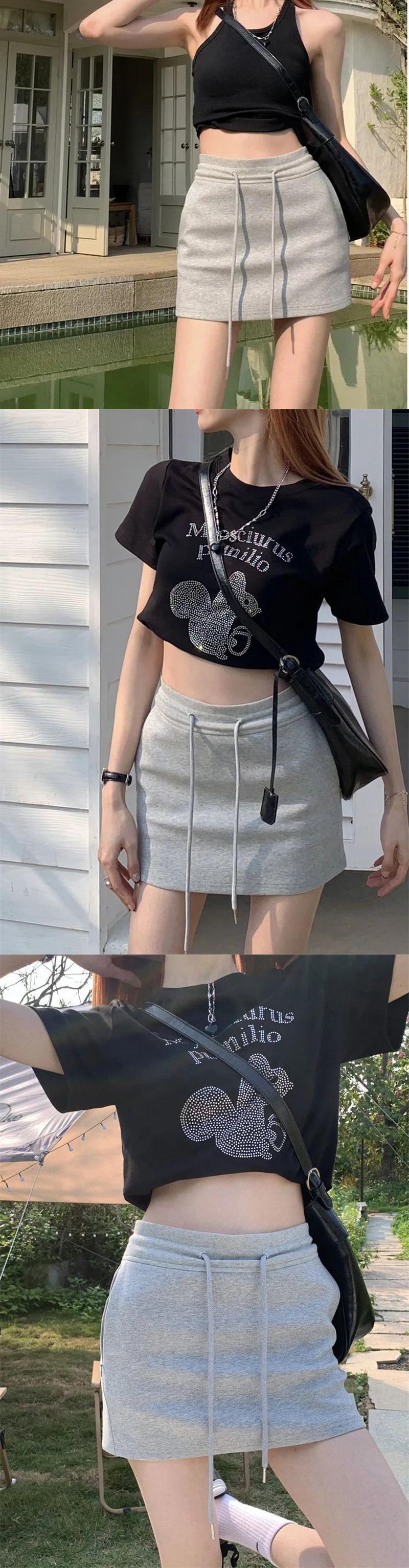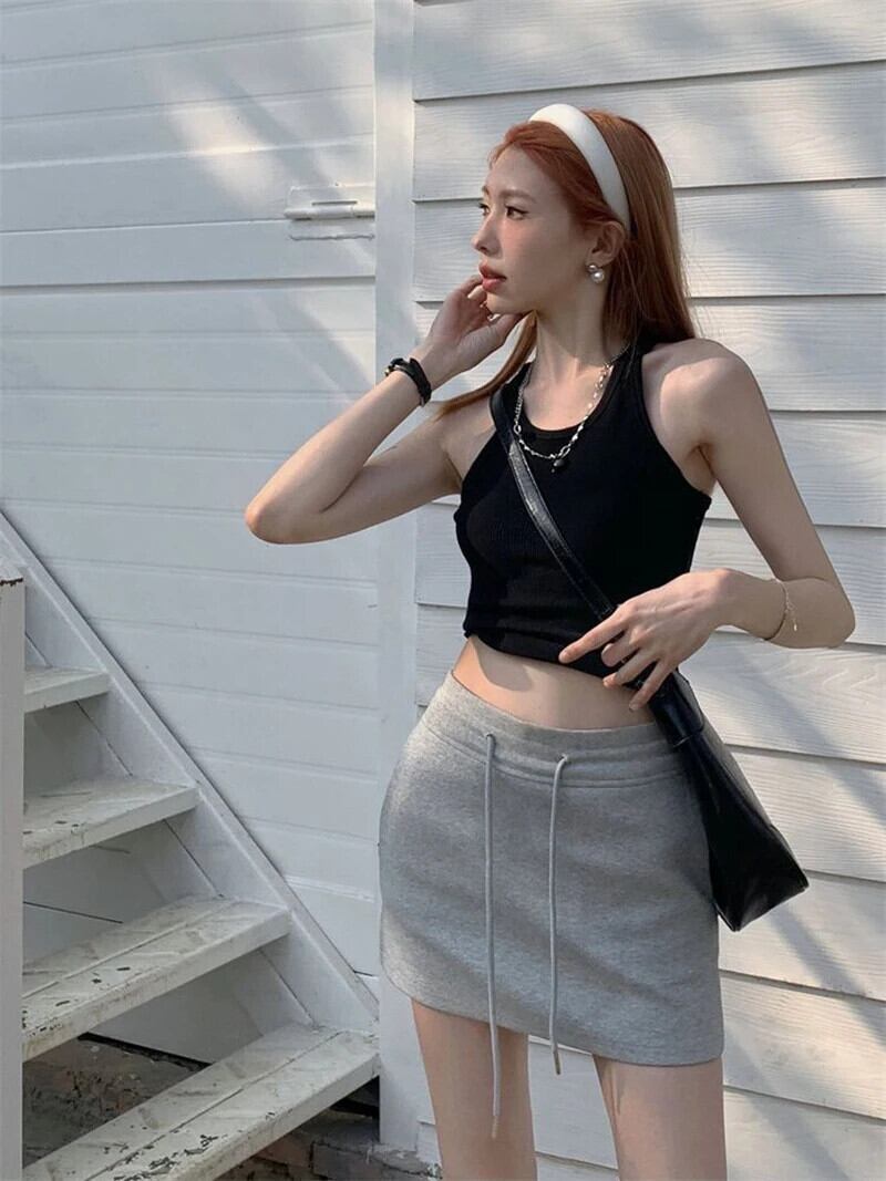 送料無料 Gidyq 女性裏地付きスカートオフィスウエストミニスカートソリッドすべて一致 Y2K レースアップ A ラインスカート Aライン ソリッドカラー 会社 学校 通勤や通学にも AE008077696186559730