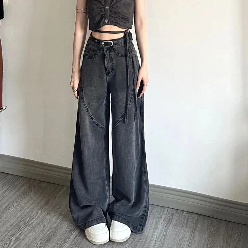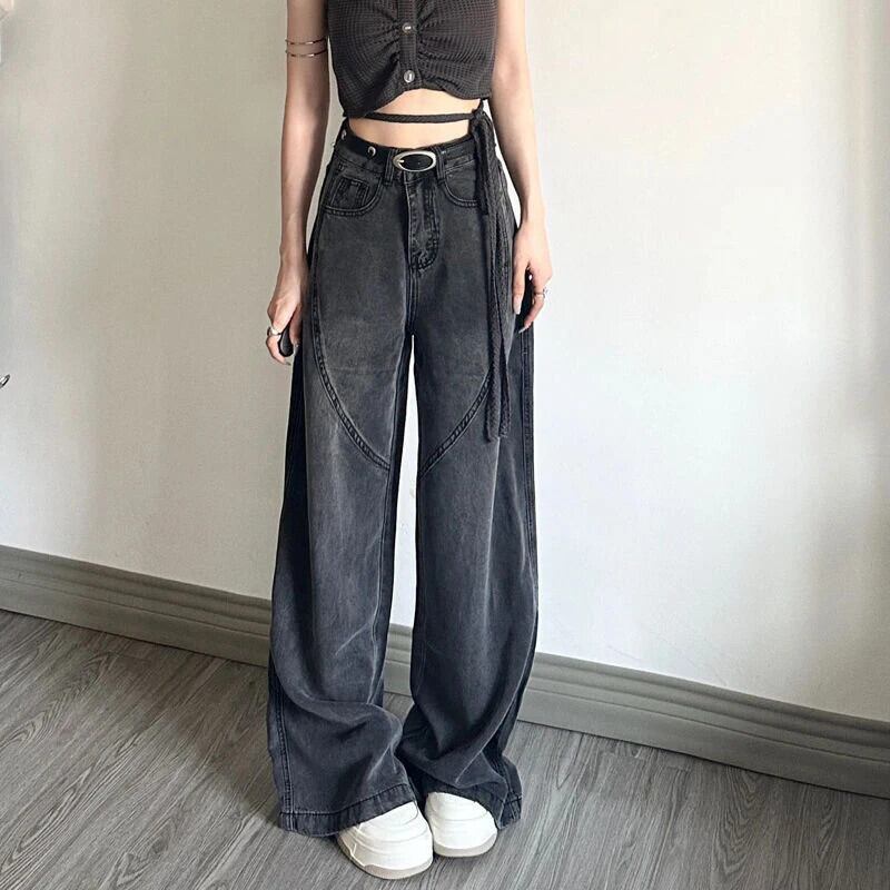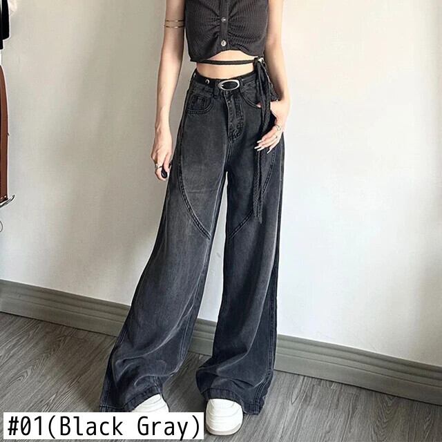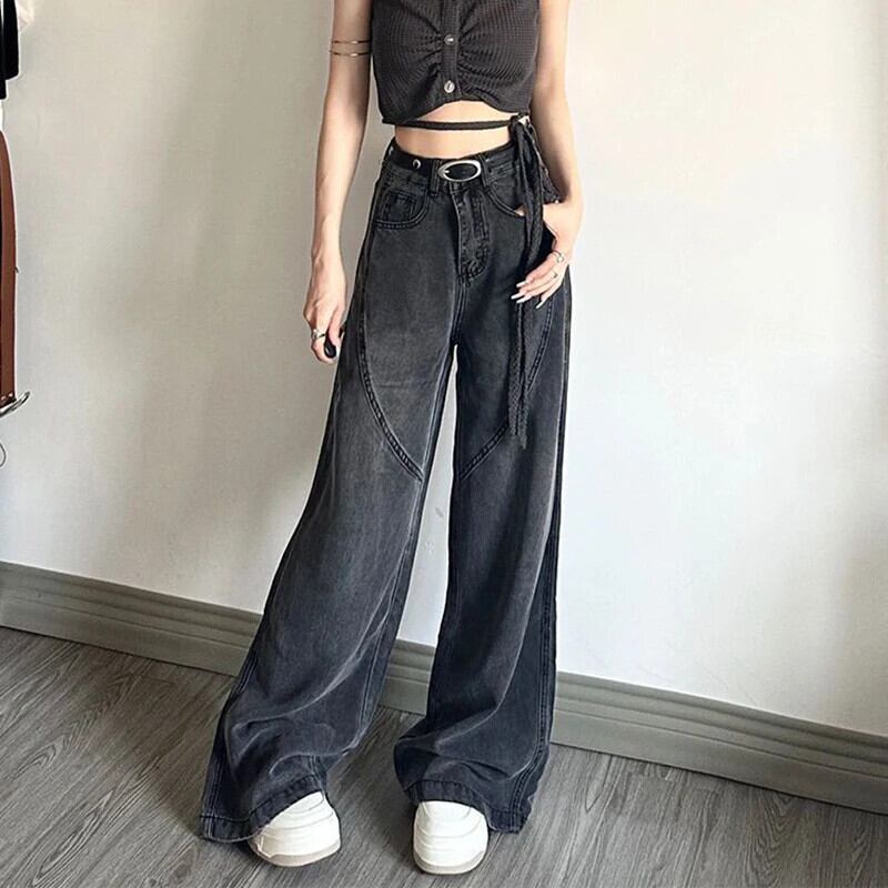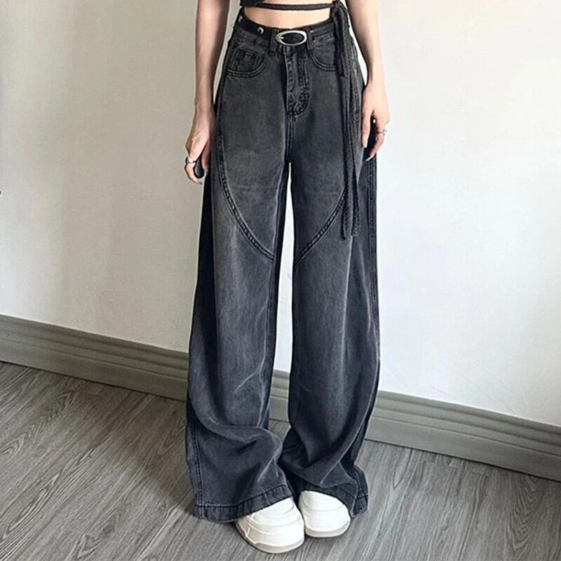 送料無料 Gidyq ヴィンテージ女性ウエストジーンズストリートルーズデニムワイドレッグパンツすべて一致ストレートズボン ワイドパンツ ビンテージ AE00807763394507801