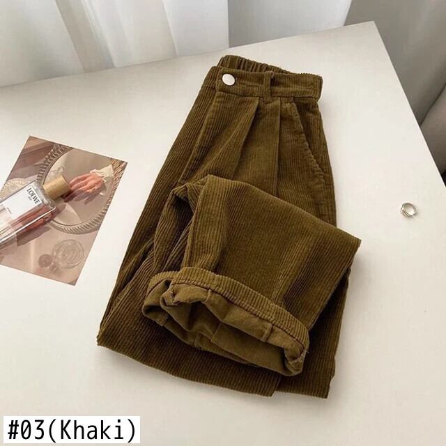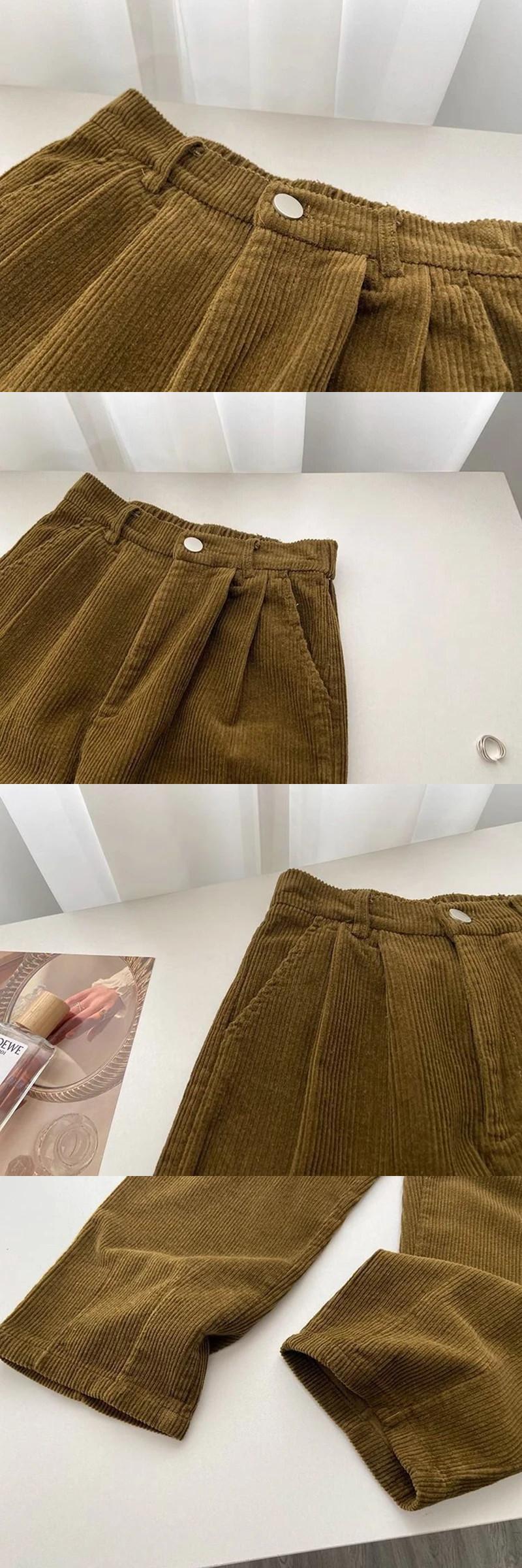 送料無料 Gidqy ヴィンテージ女性コーデュロイパンツウエストコーヒーストレートパンツポケットすべて一致ワイドレッグパンツ ワイドパンツ ビンテージ AE008077670658910594