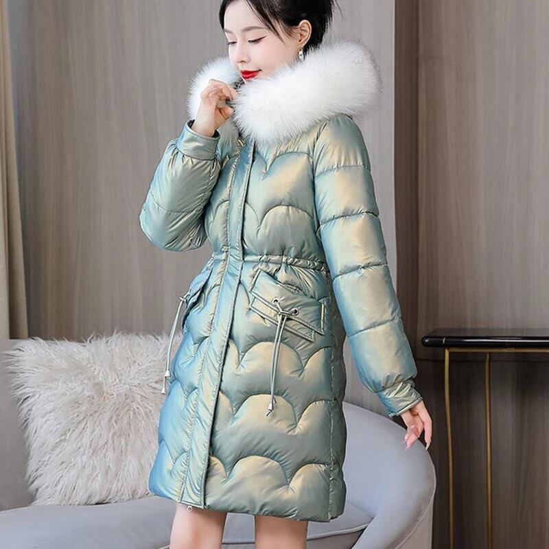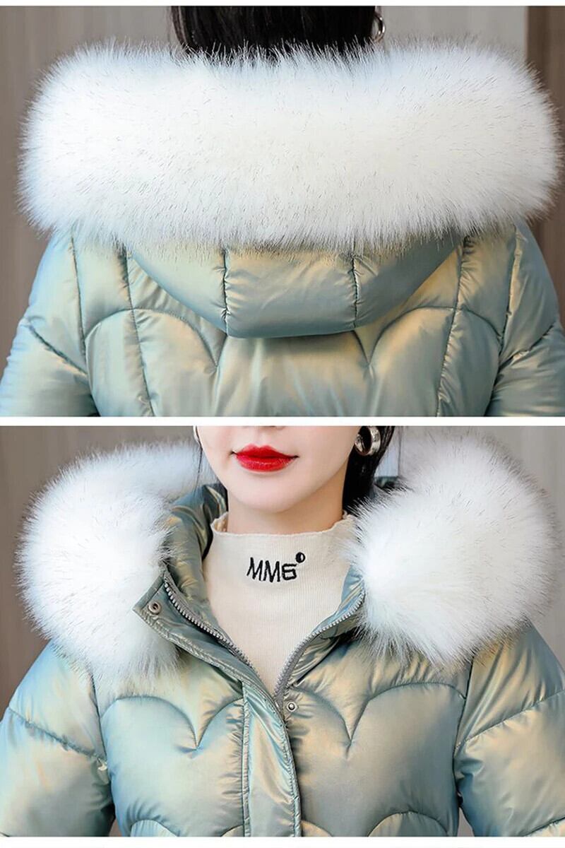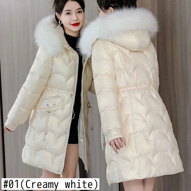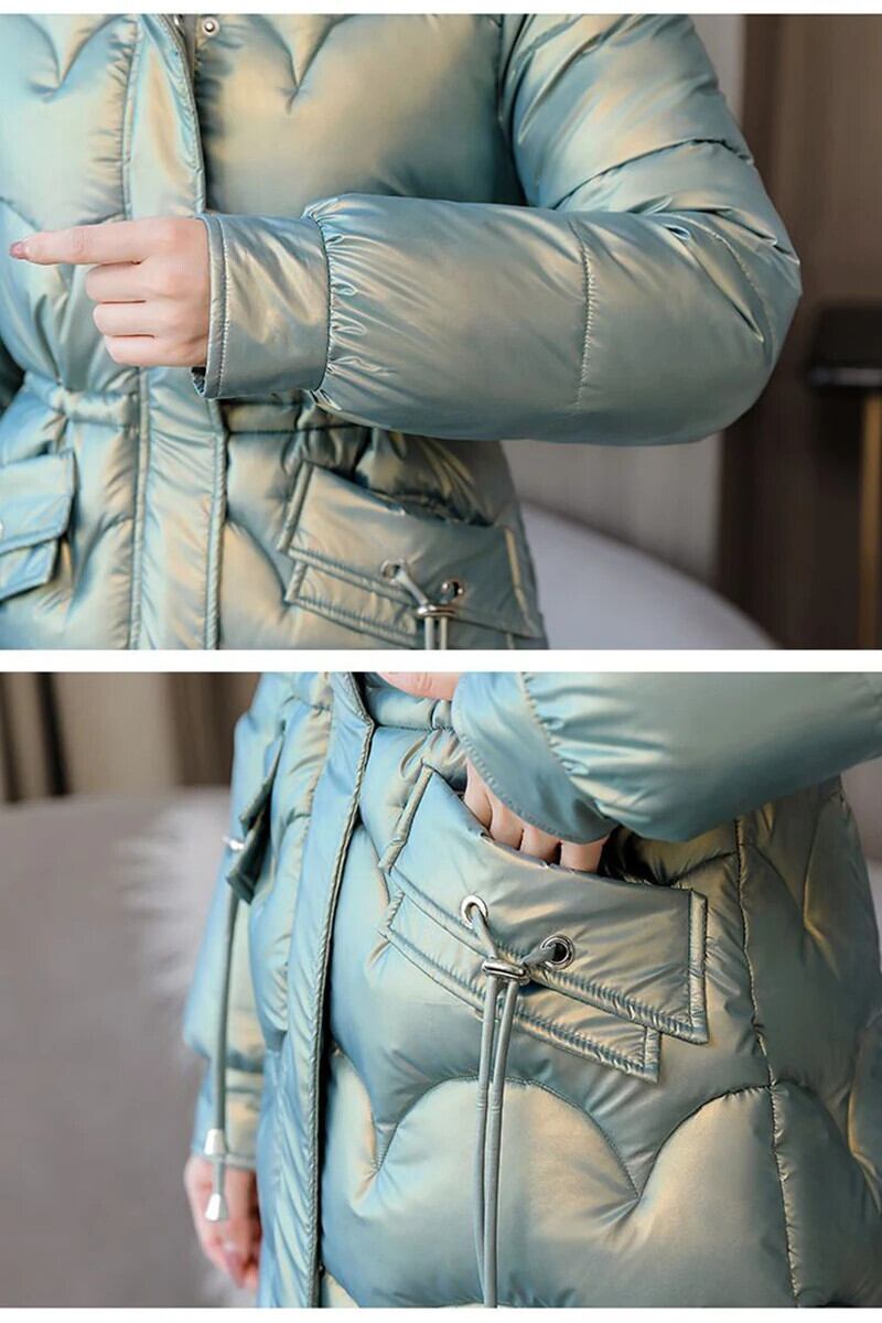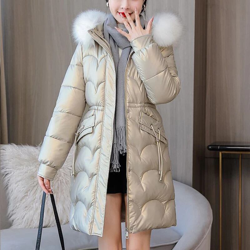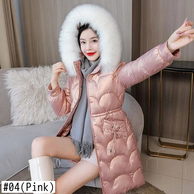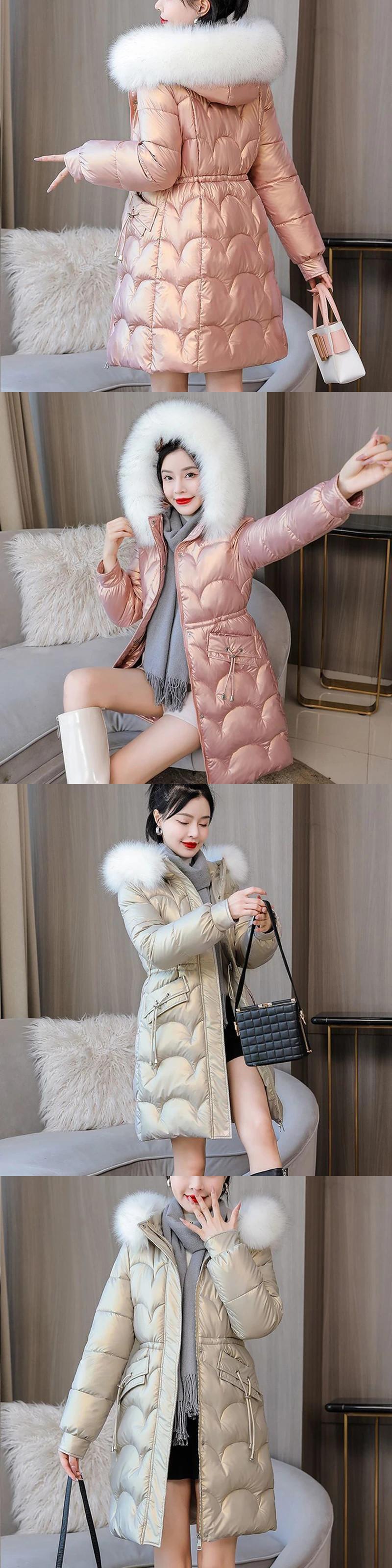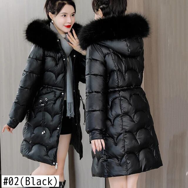 送料無料 Gidyq 女性の冬厚くて暖かいパーカー毛皮フード付きパフティジャケット光沢のあるミディルーズダウンコート ウィンター 冬物 AE008077667293938360