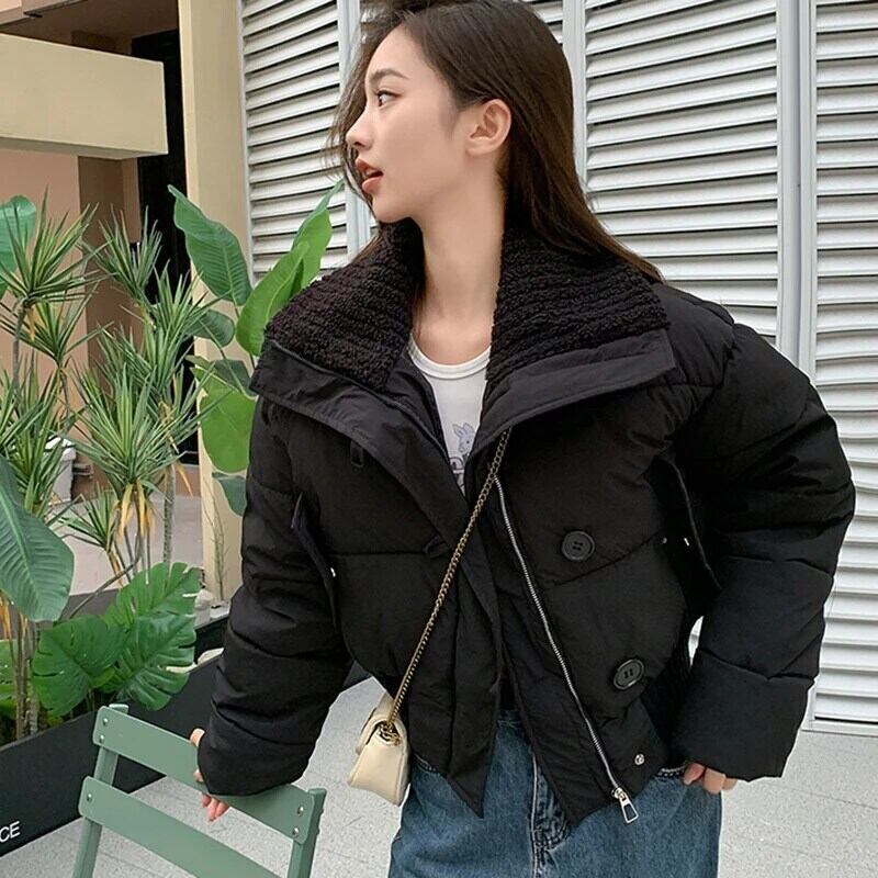 送料無料 Gidyq 女性厚くて暖かいクロップドパーカー冬ストリートルーズダウンジャケットパッチワークパフコート ウィンター 冬物 AE008077632247190576