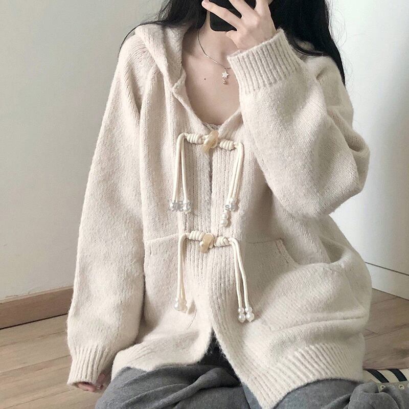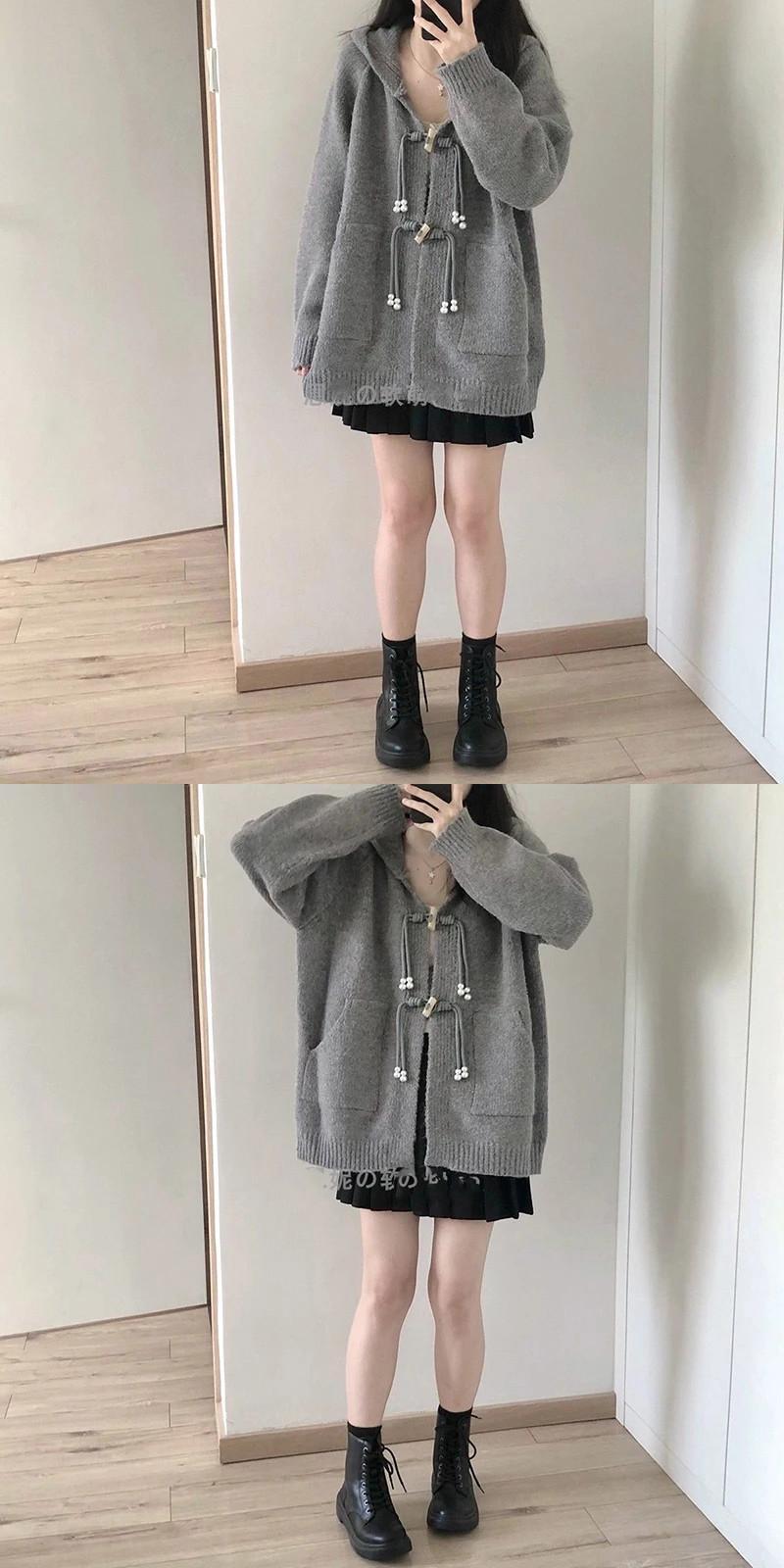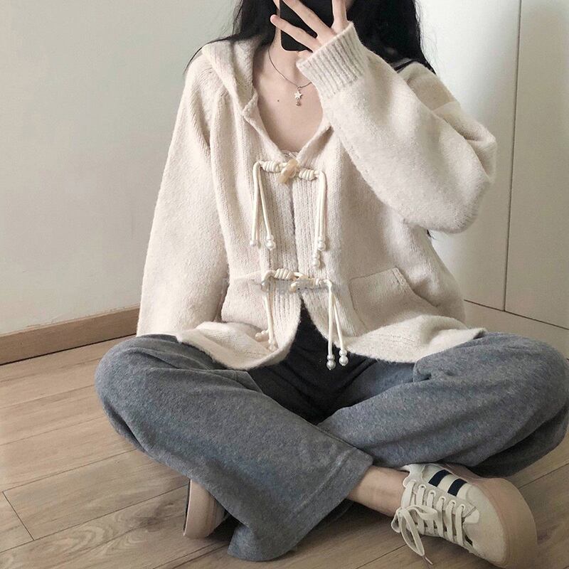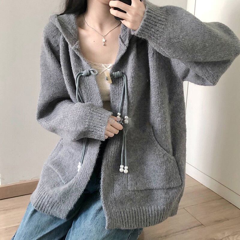 送料無料 Gidyq 女性カーディガンセーターストリートルーズニットコートすべて一致フード付きジャケット秋 オータム 秋物 AE008077678488822160