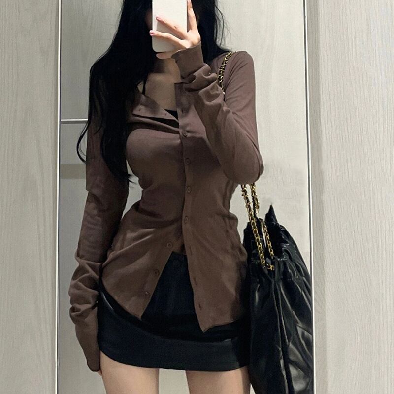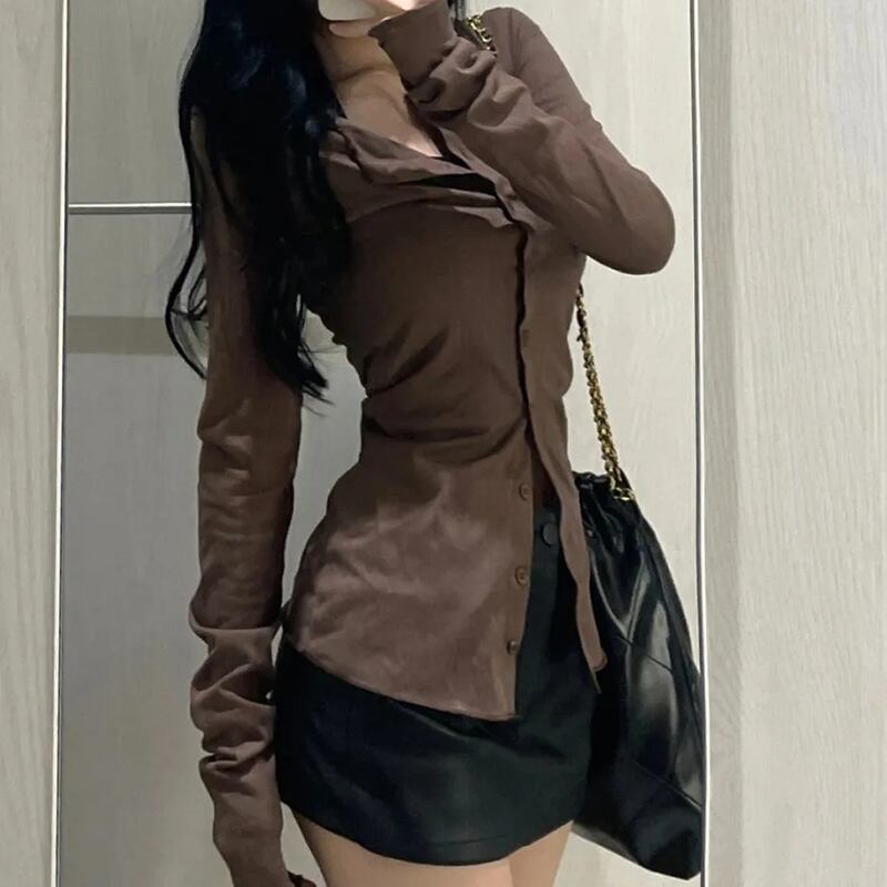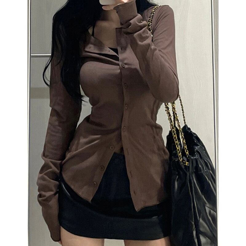 送料無料 Gidyq ストリート女性シャツスリムフィット長袖トップス Y2K すべて一致ソリッドシャツ秋 ロング オータム 秋物 ソリッドカラー AE008077635997254760