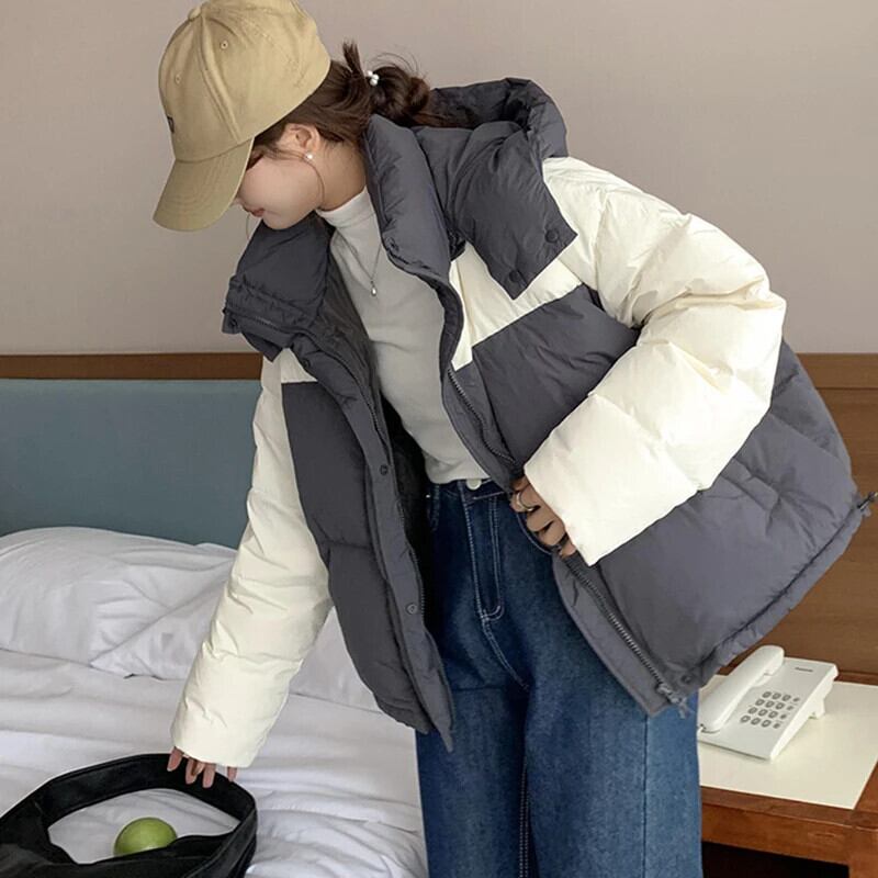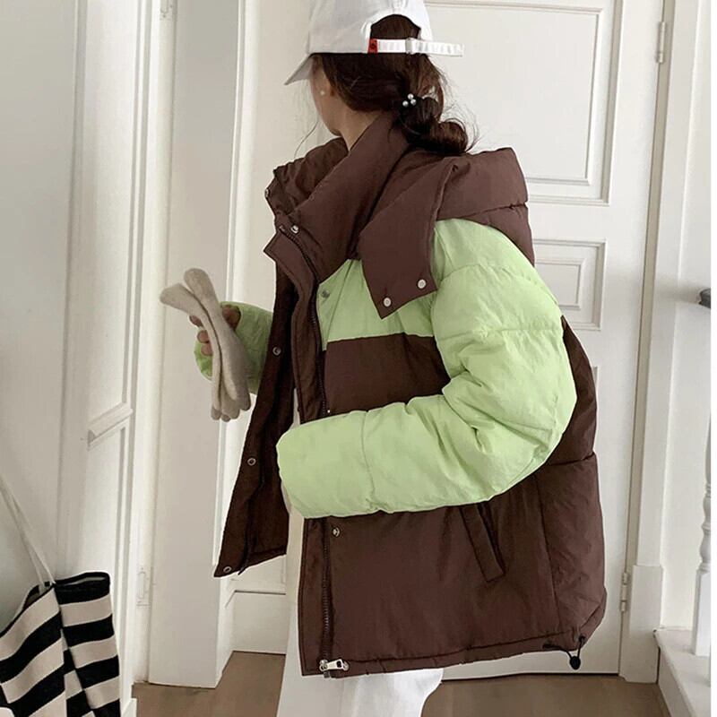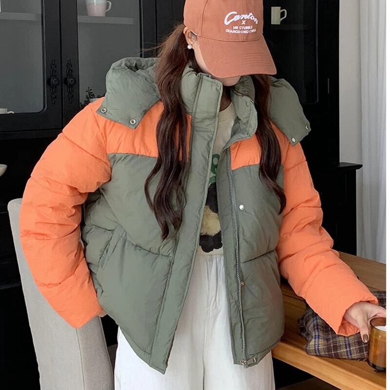送料無料 Gidyq 女性パッチワークパーカー冬すべて一致パフティジャケットストリート厚く暖かいルーズダウンコート ウィンター 冬物 AE008077629027119382