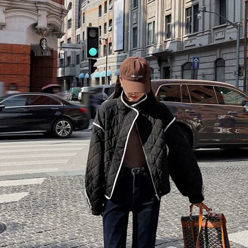送料無料 Gidyq 冬の女性のダウンジャケットストリートルーズ厚く暖かいパーカーすべて一致クロップドコート ウィンター 冬物 AE008077677369898760