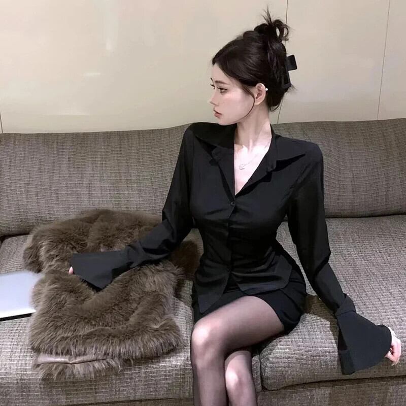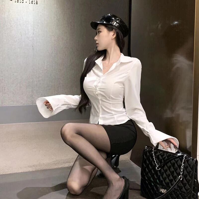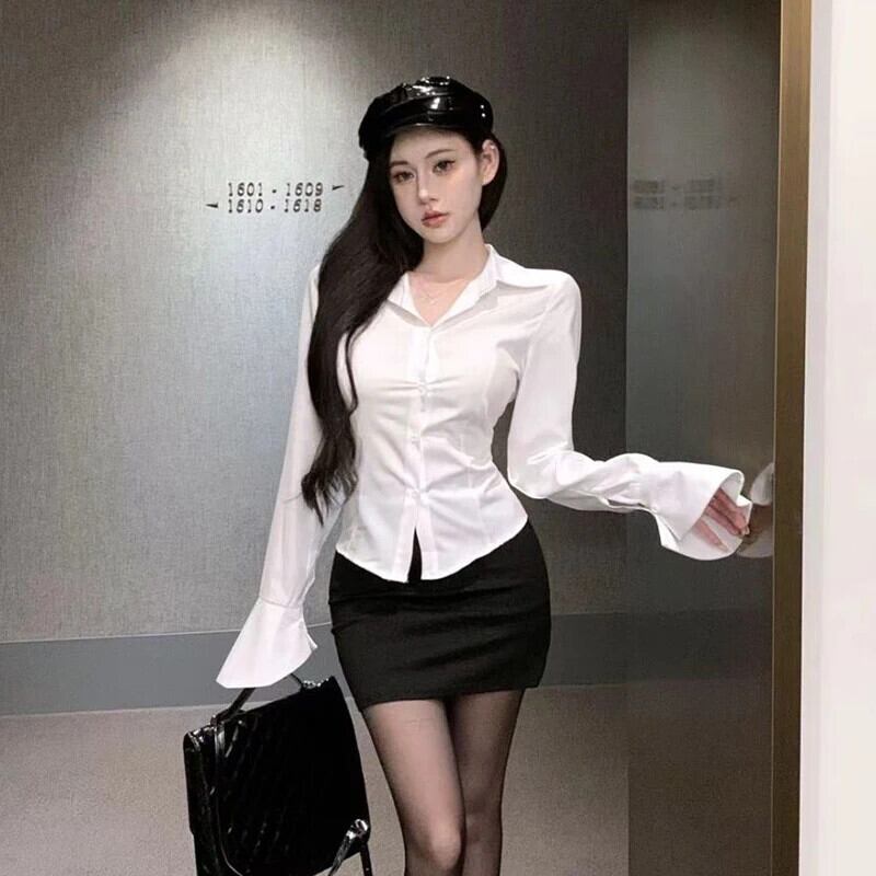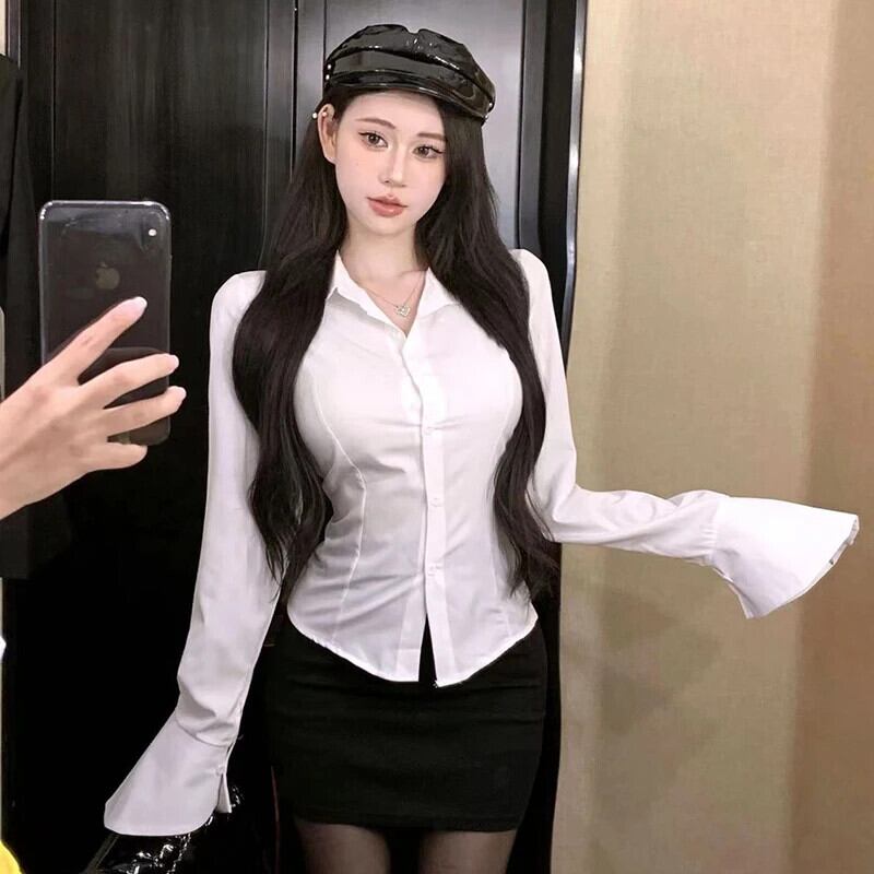 送料無料 Gidyq 女性包帯シャツストリートスリムブラウス春 Y2K ed ベルスリーブシャツ スプリング 春物 AE008077690678964663