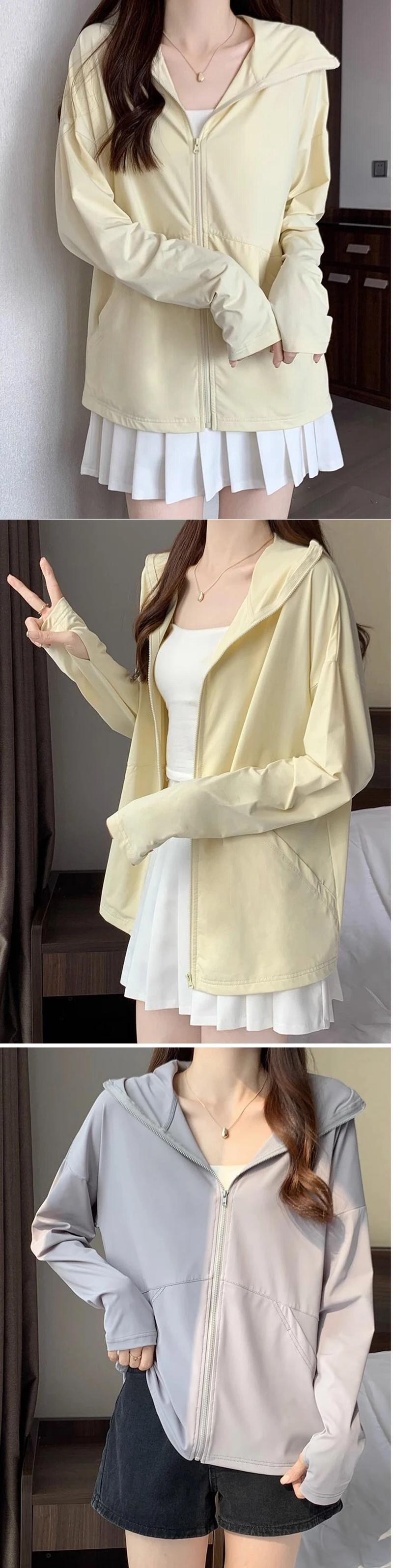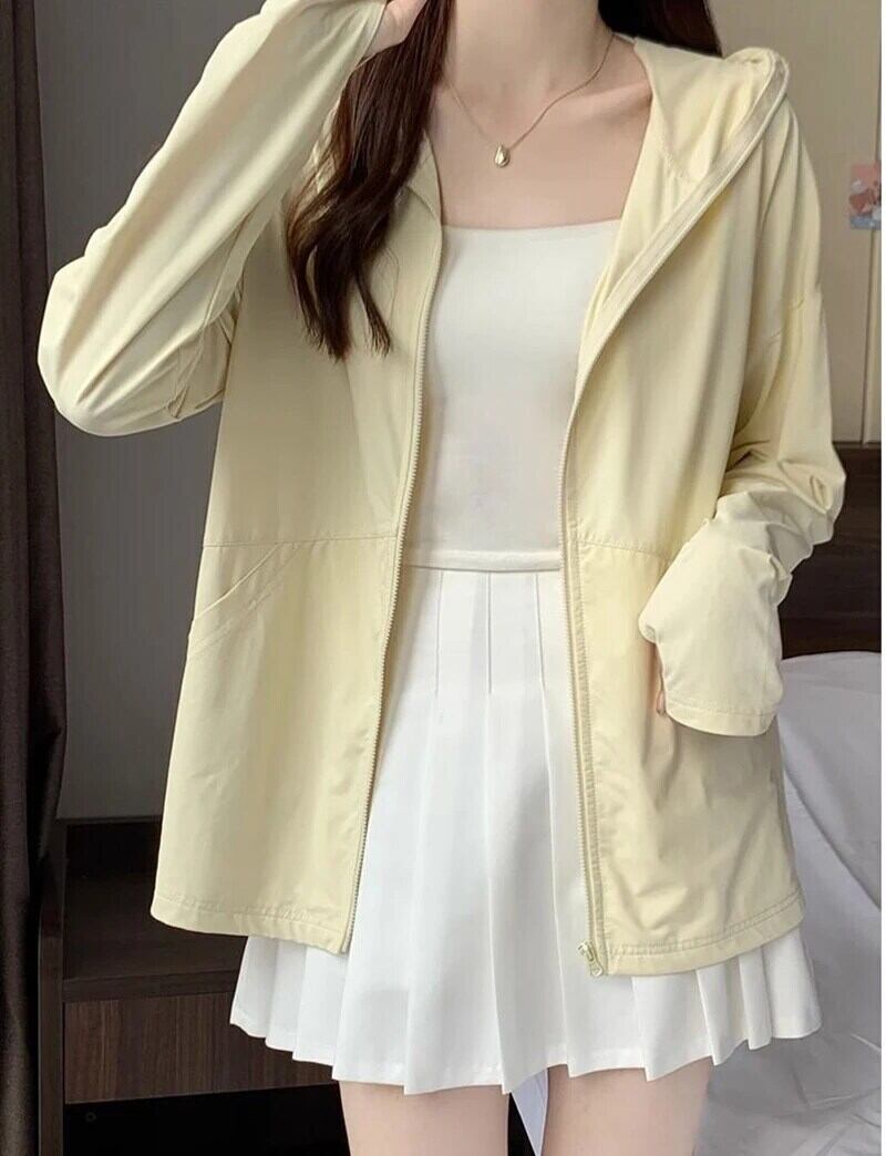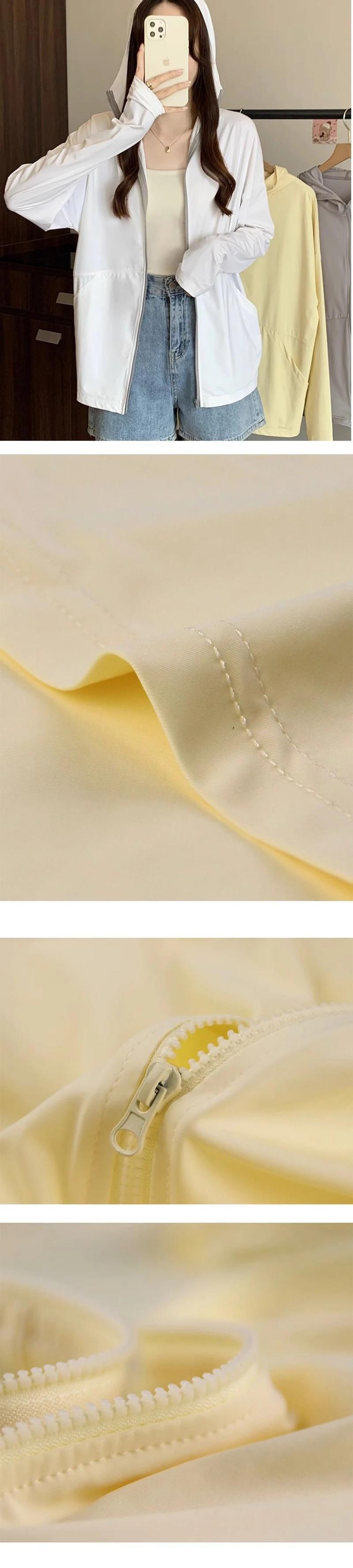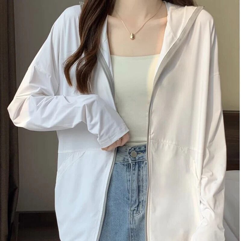 送料無料 春の女性の固体パーカー緩い薄いコートフード付き白ジッパー日焼け防止トレーナー ホワイト スプリング 春物 ソリッドカラー AE008077695885452369