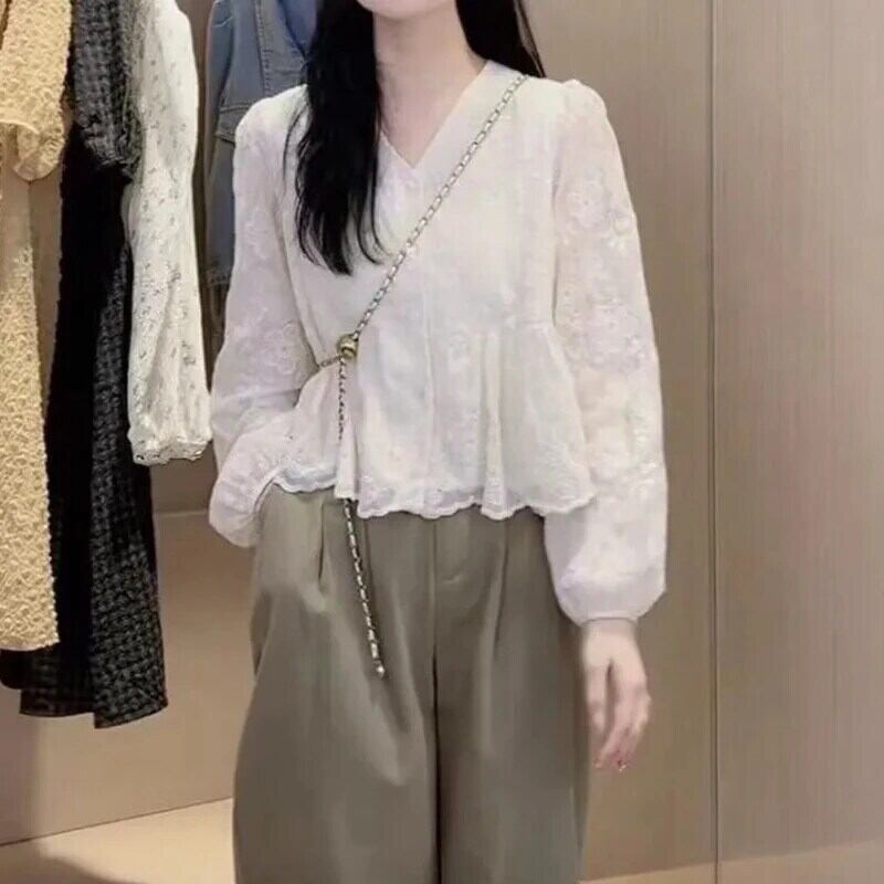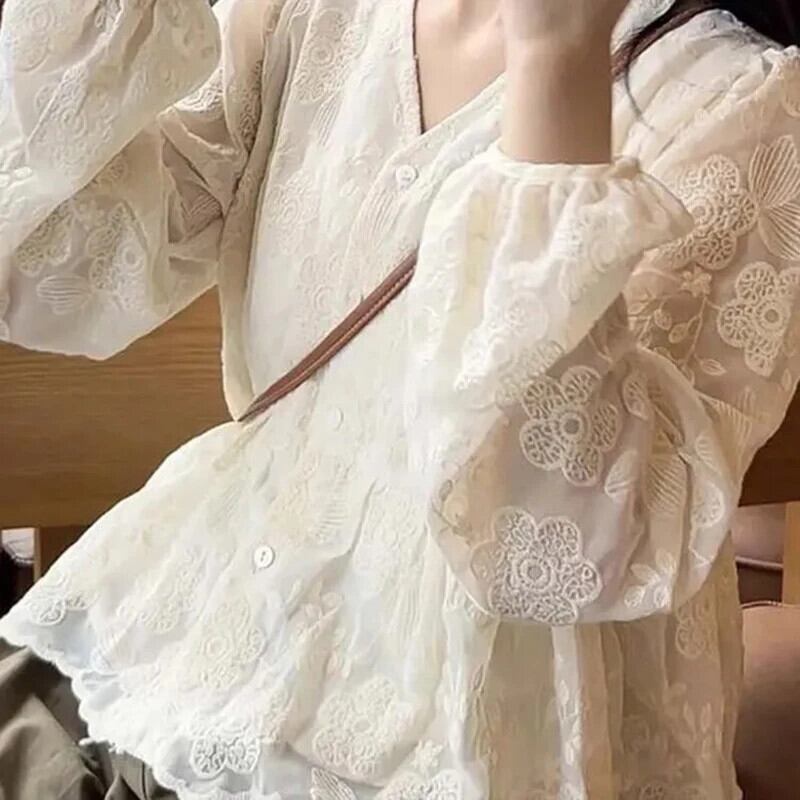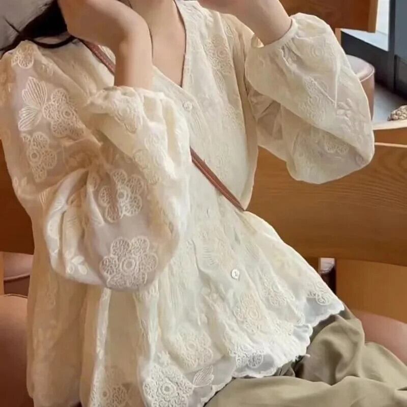 送料無料 Gidyq 女性レースカーディガンプリントルーズシャツ Y2K すべて一致長袖トップス春 ロング スプリング 春物 AE008077623595233475