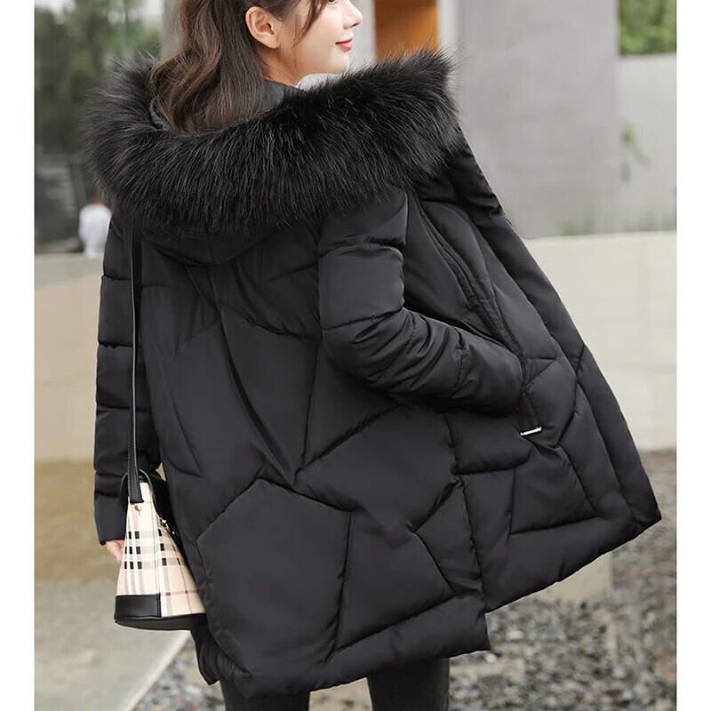 送料無料 Gidyq 女性厚くて暖かい毛皮パーカー冬のフード付きパフティジャケットすべて一致ミディルーズダウンコート ウィンター 冬物 AE008077666946423604