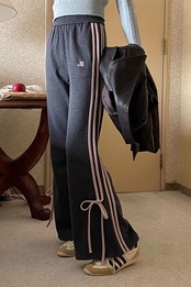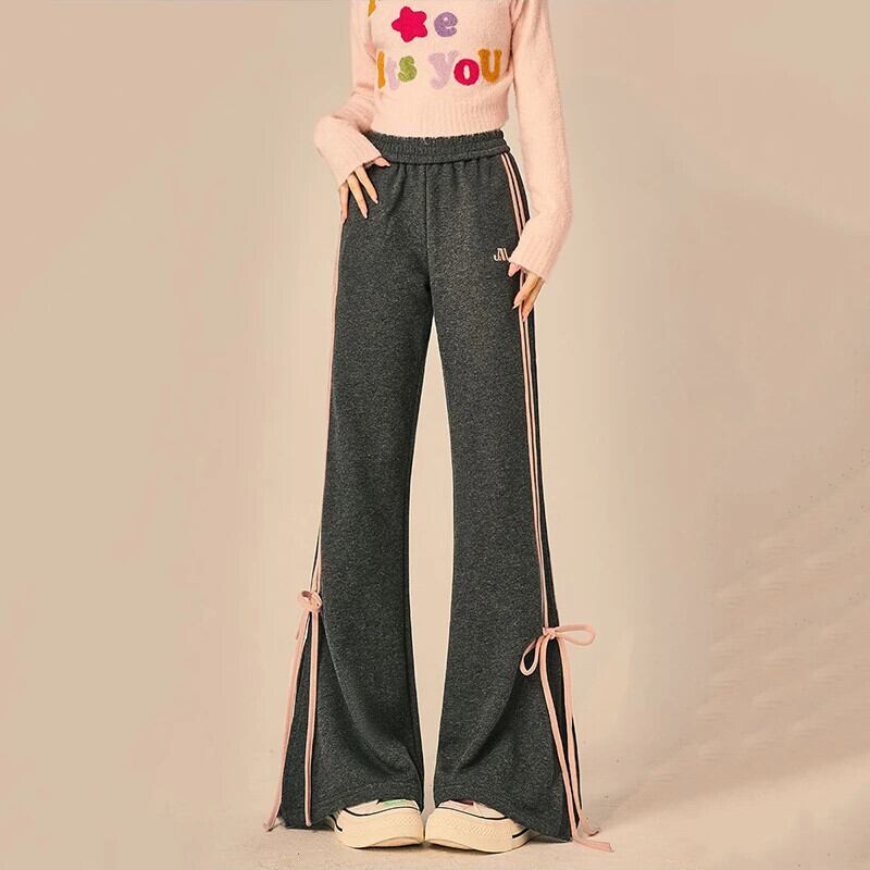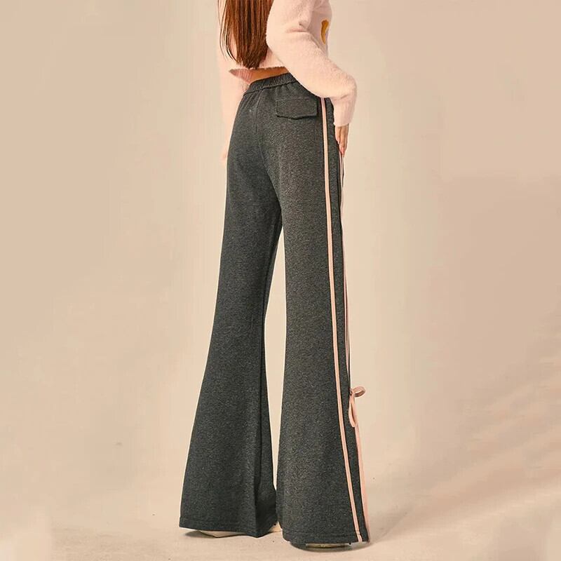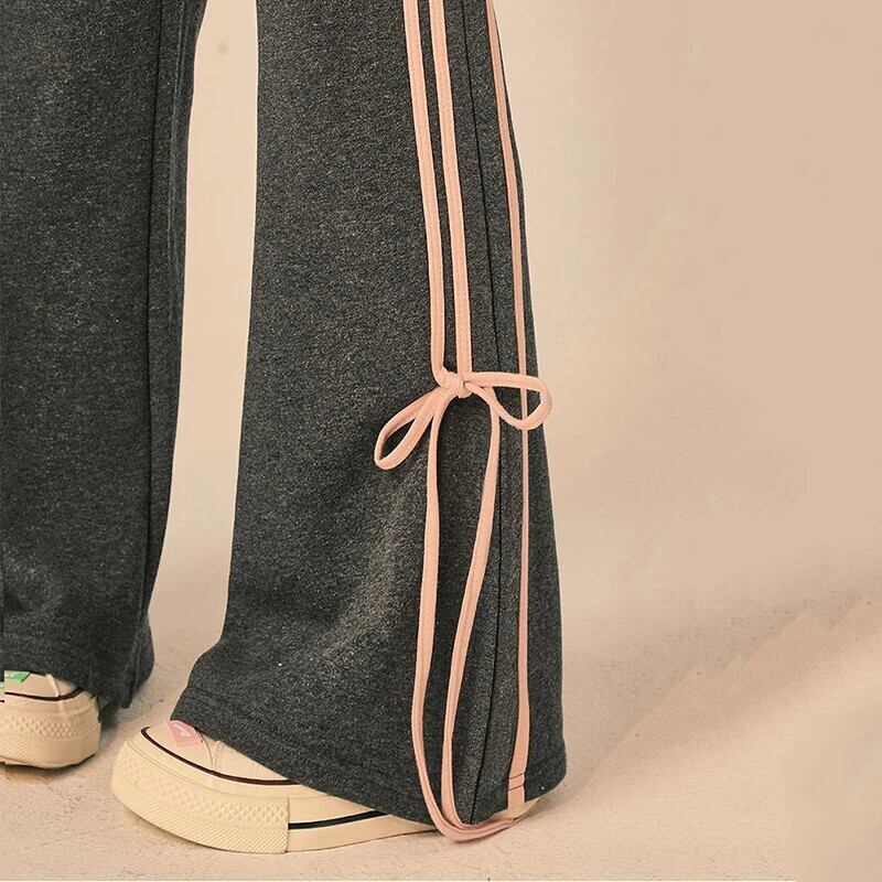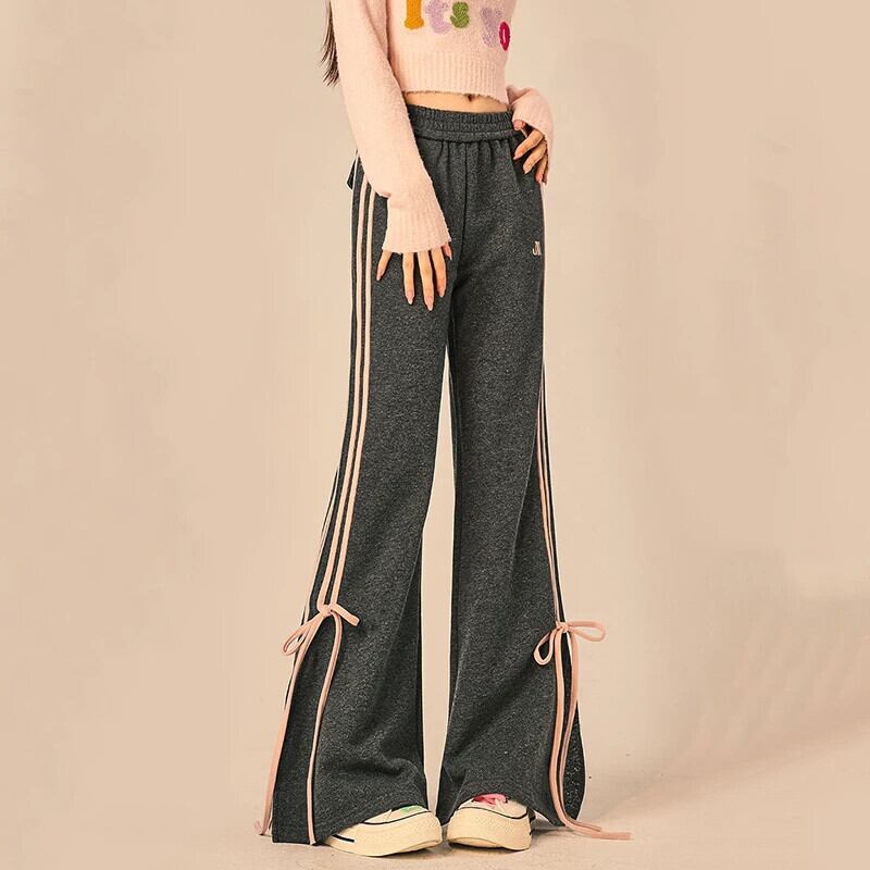 送料無料 Gidyq 女性ボウパンツストリートストライプルーズワイドレッグパンツ春すべて一致ストレートズボン リボン スプリング 春物 ワイドパンツ AE008077652488718423