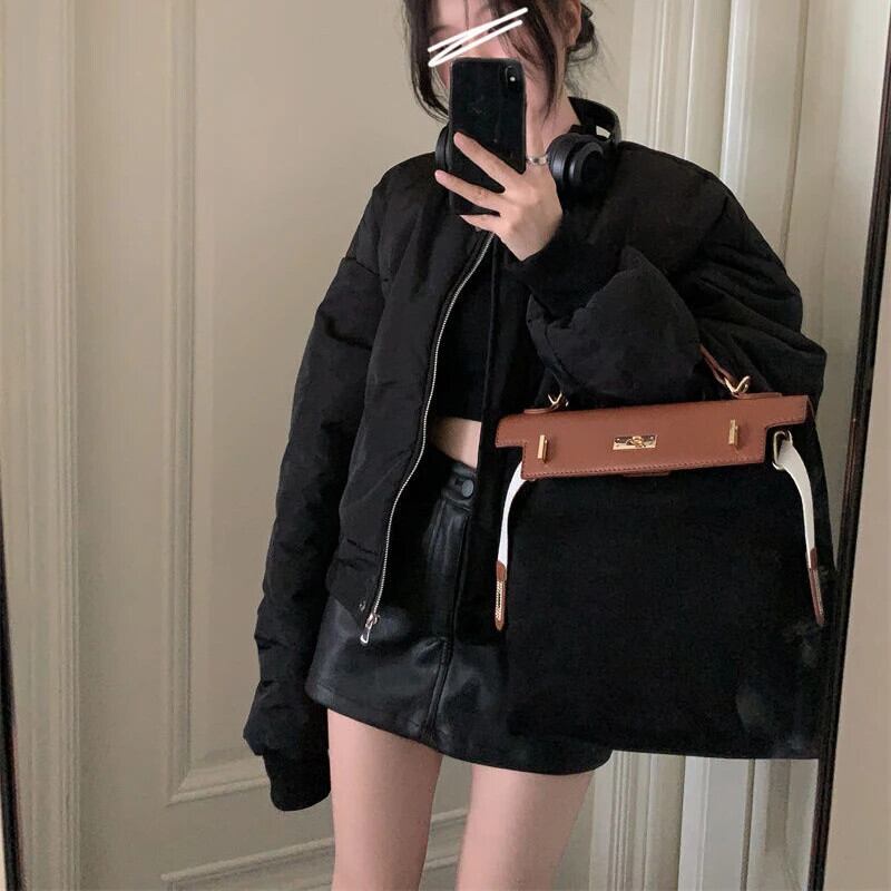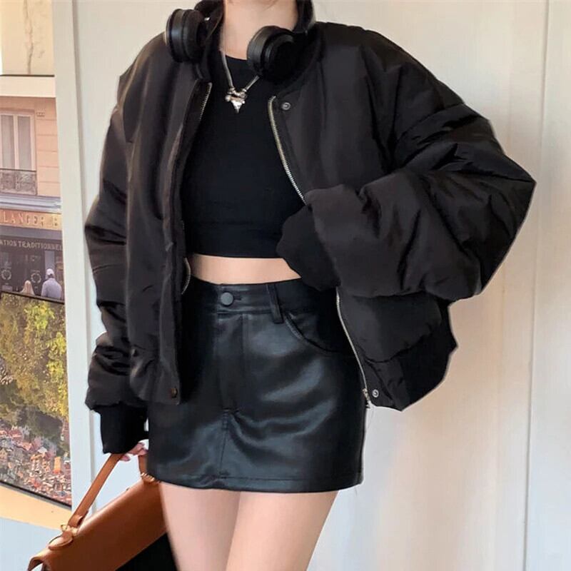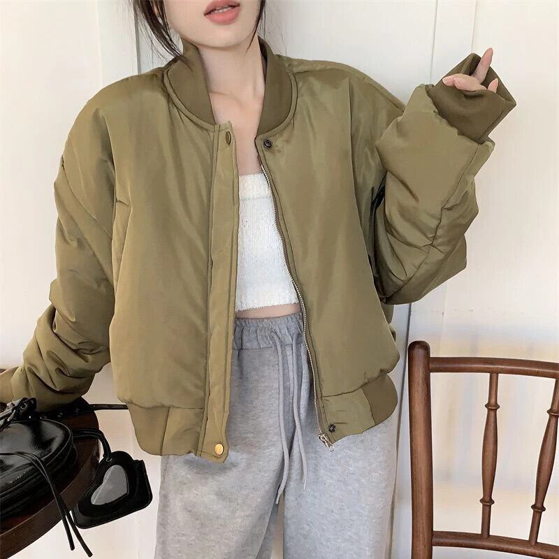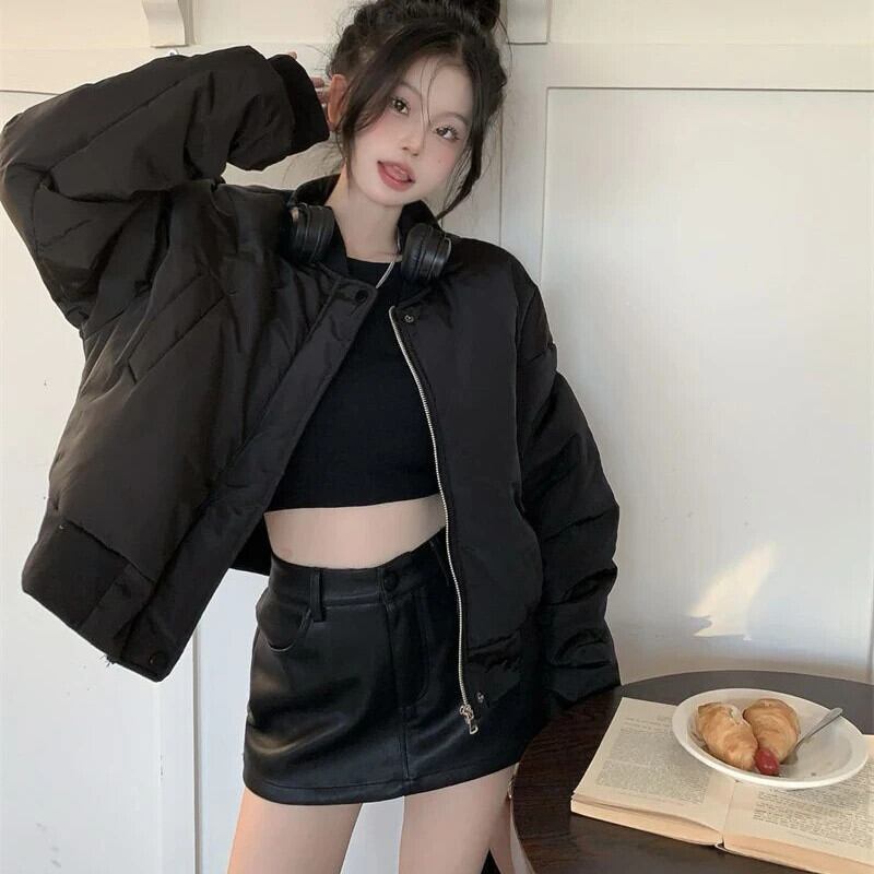 送料無料 Gidyq 女性パーカー冬厚くて暖かいクロップドルーズダウンジャケットストリート野球パフティコート ウィンター 冬物 AE008077630176120439