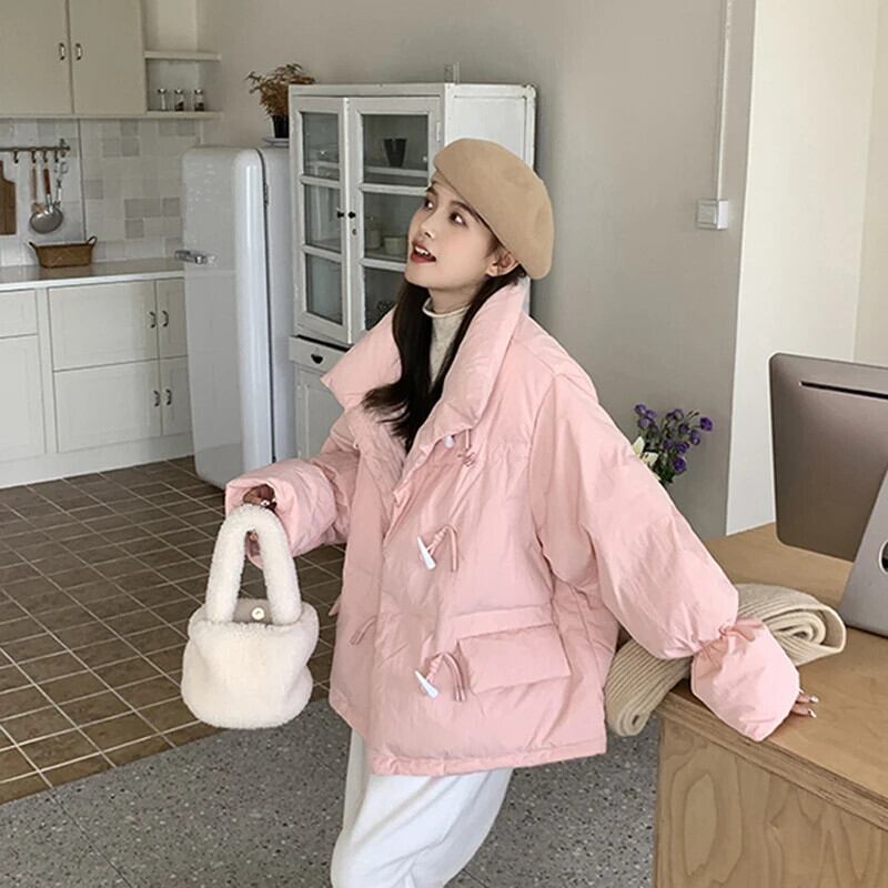 送料無料 Gidyq 女性ストリートパーカー冬デニムボタンルーズパファーコートすべてマッチパフィージャケット ウィンター 冬物 AE008077616791893501