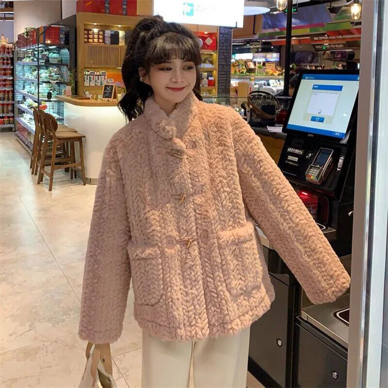 送料無料 Gidyq ストリートウェア女性ラムジャケット秋の ed ボタンルーズコートすべて一致ポケットセーター オータム 秋物 AE008077666071480646