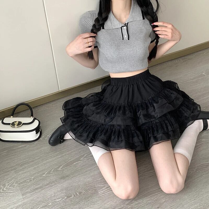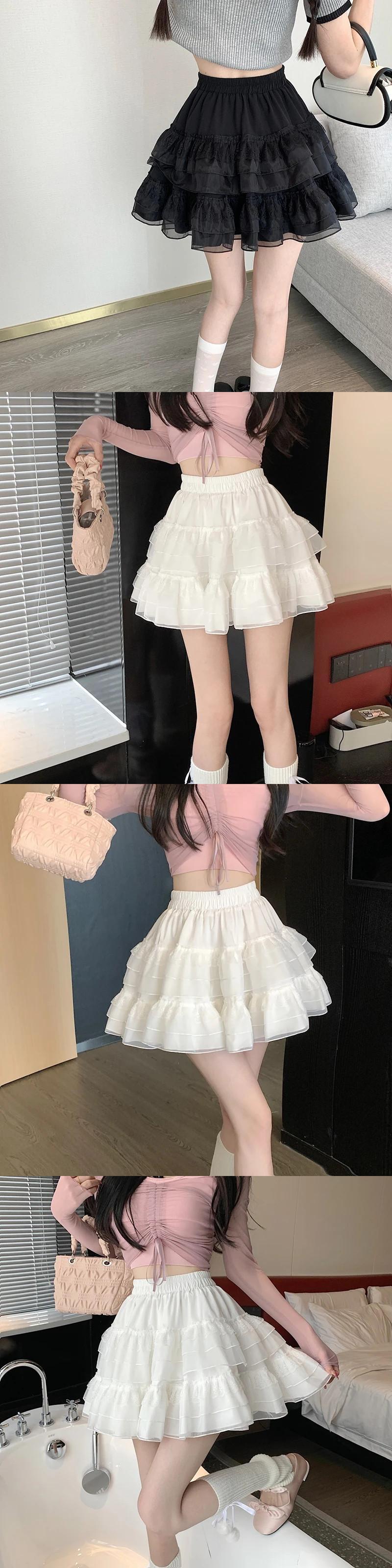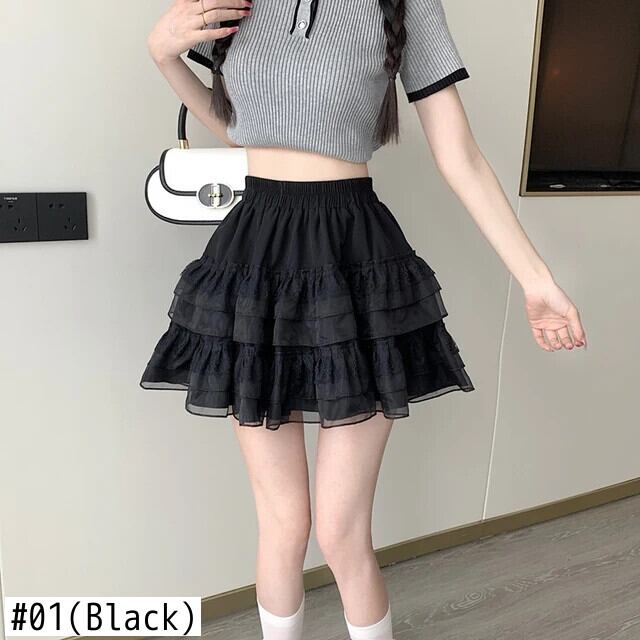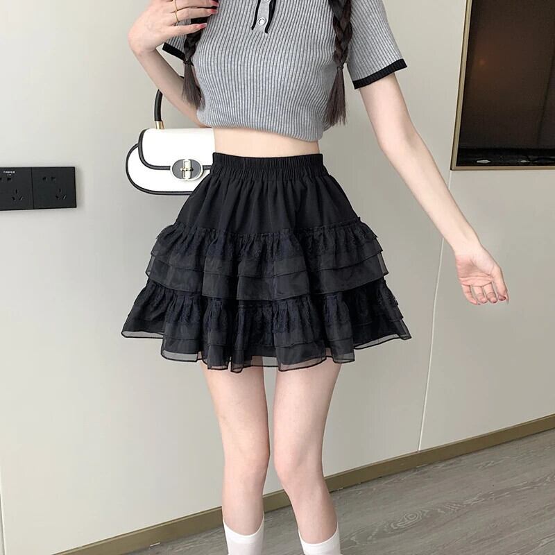 送料無料 Gidyq 夏ウエストひだミニスカート女性メッシュボールガウンスカートかわいい A ラインスカート 大人ガーリー スウィート キュート カジュアル サマー 夏物 Aライン AE008077698747990023